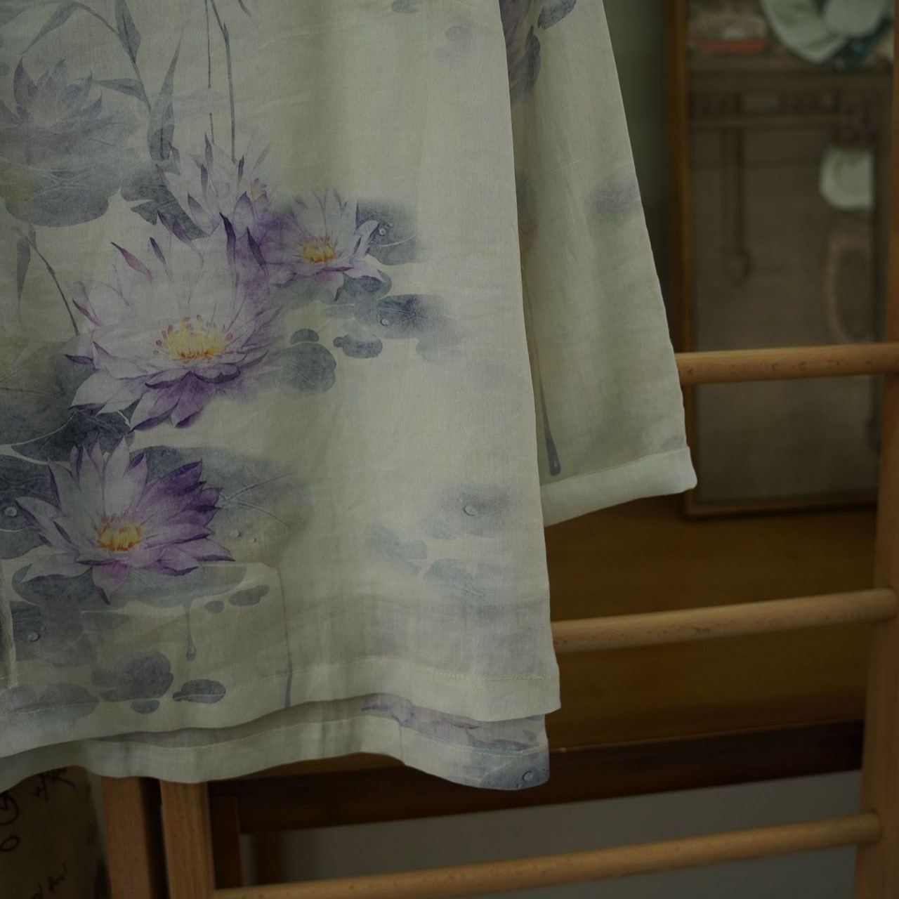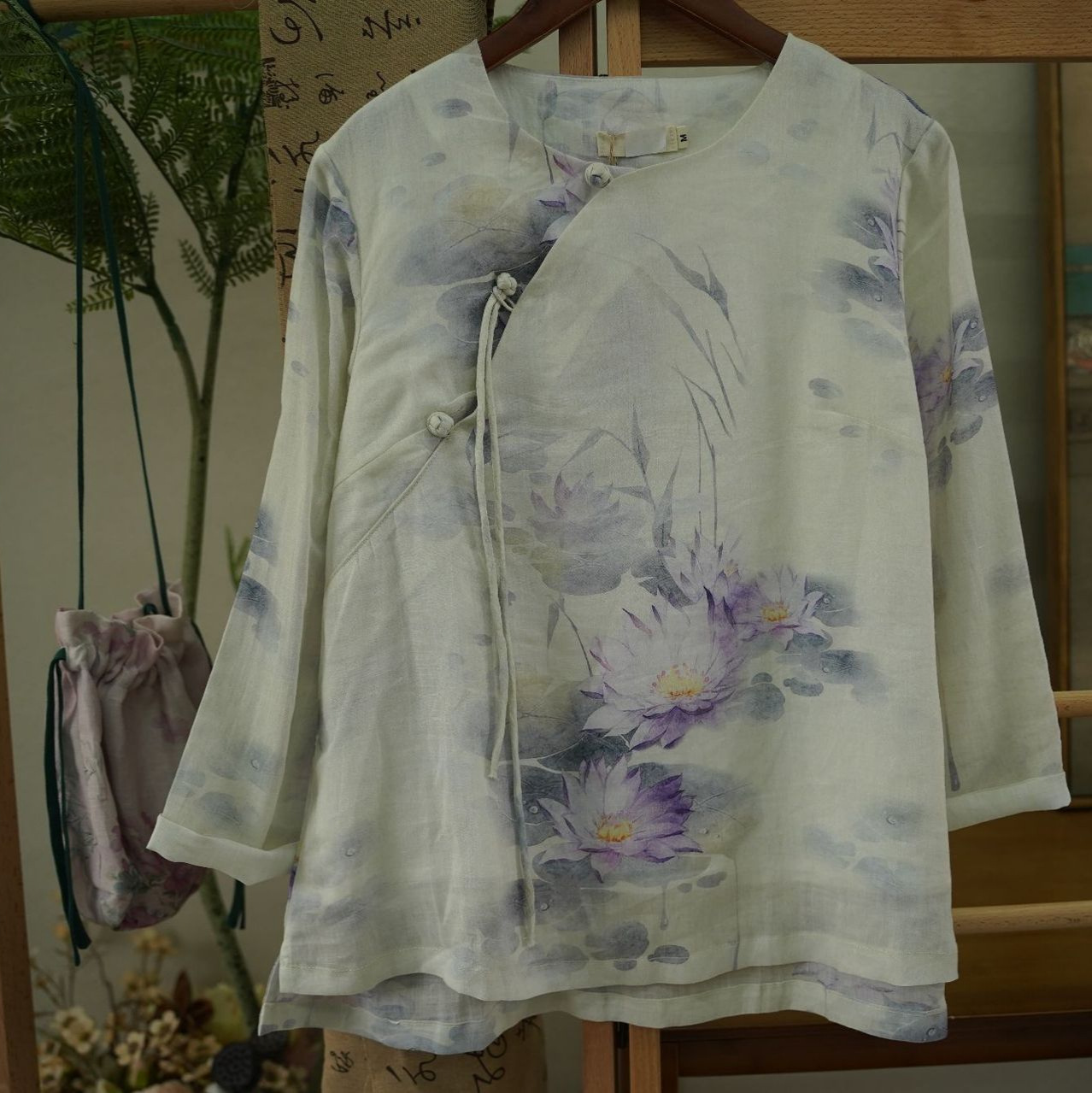 | nameOriginal | Summer New Ramie Digital Printing Double-layer Crewneck Handmade Pimple Buckle Buckle Loose Zen Tea Clothing 093 |