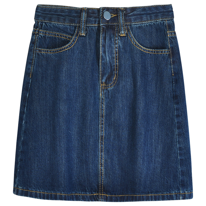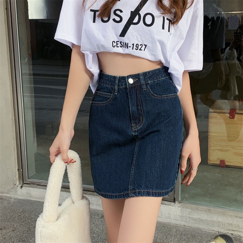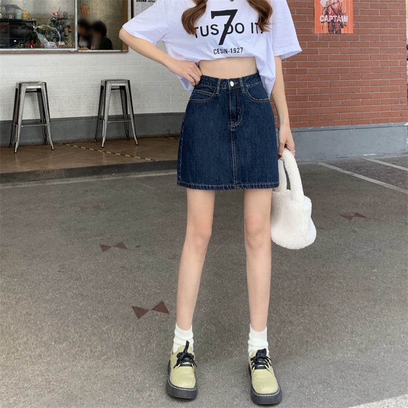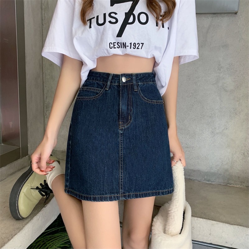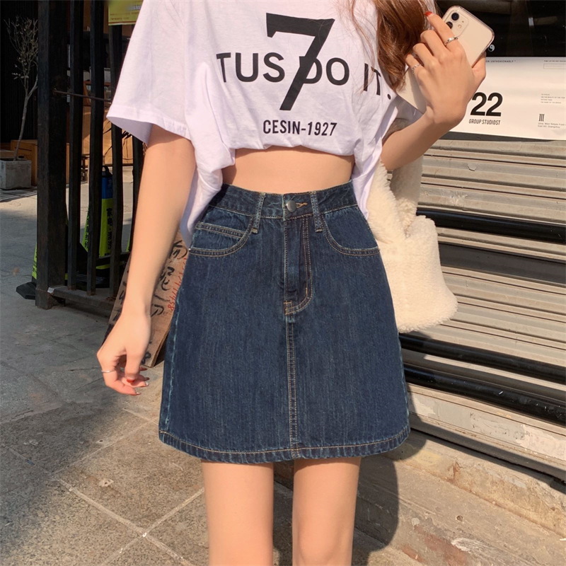 | nameOriginal | Summer new retro high waist A- line skirt women's small solid color versatile dark blue Denim short skirt |
