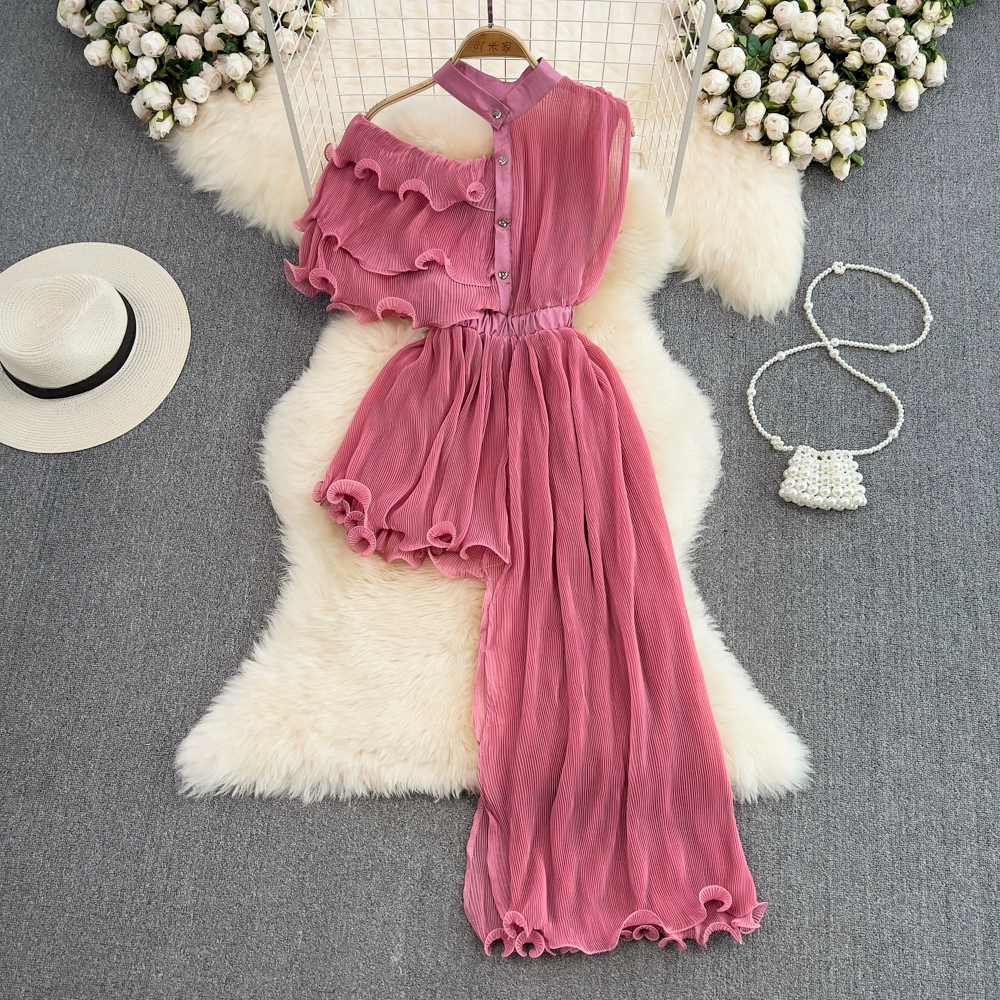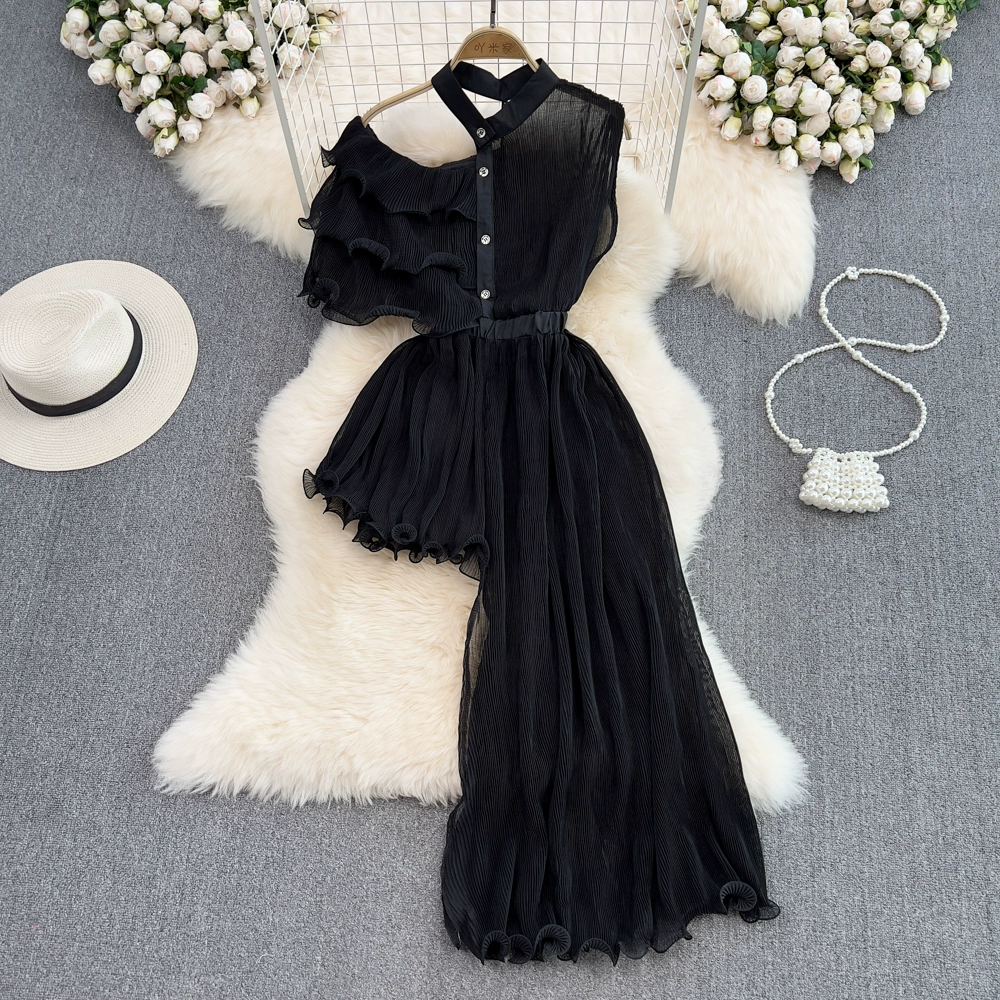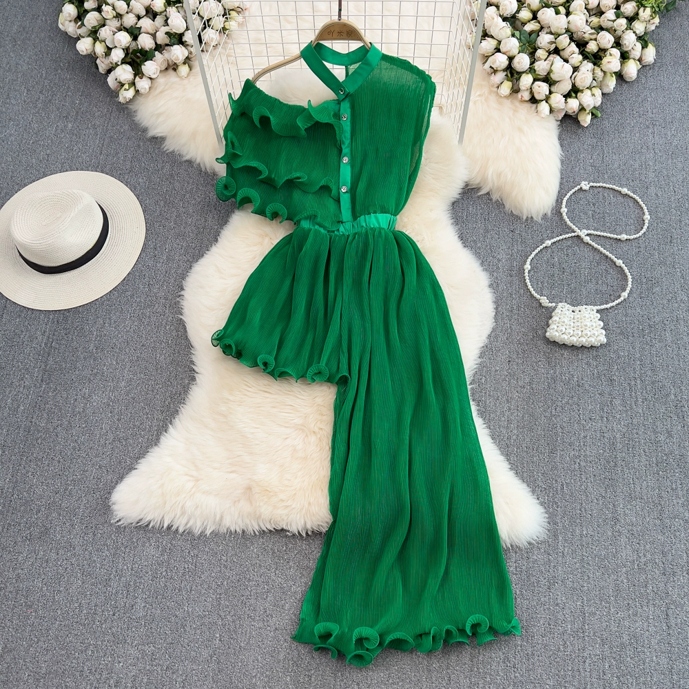 New summer retro irregular a-line pleated shirt