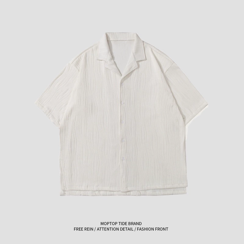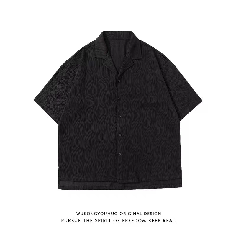 Summer new retro short-sleeved shirt for men, trendy brand, loose and versatile design, Japanese concave and convex line niche shirt
