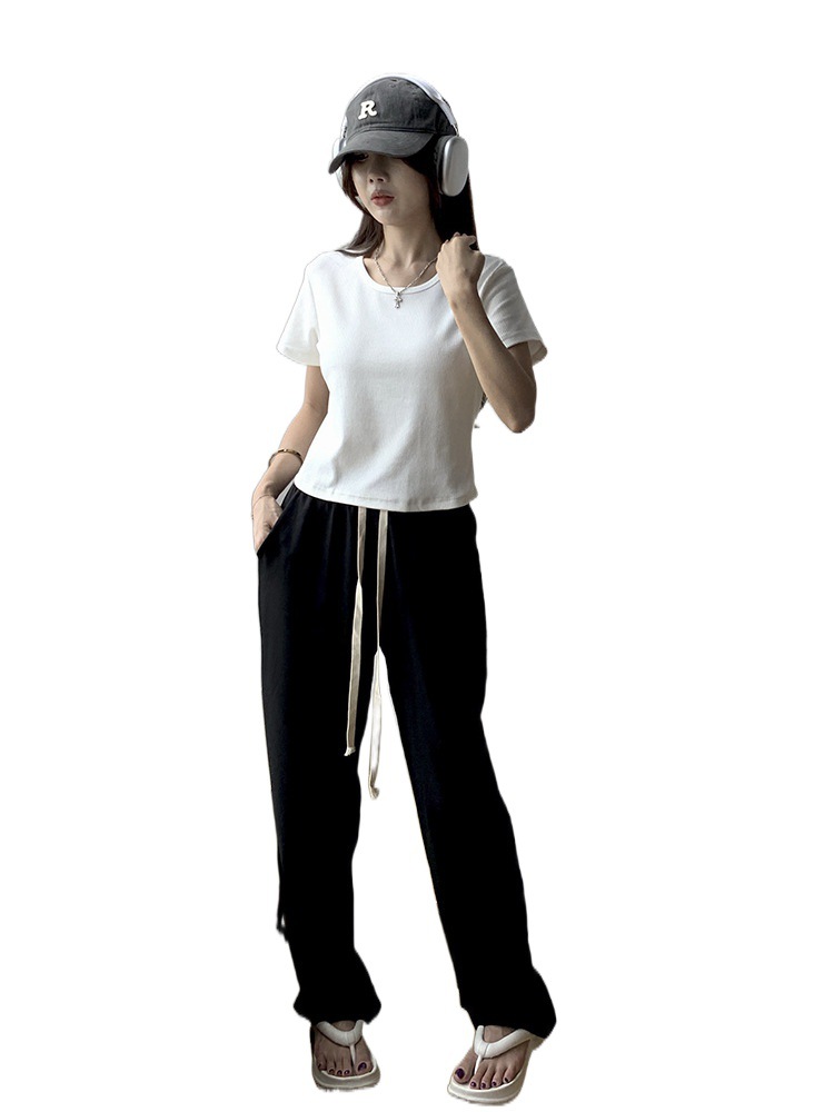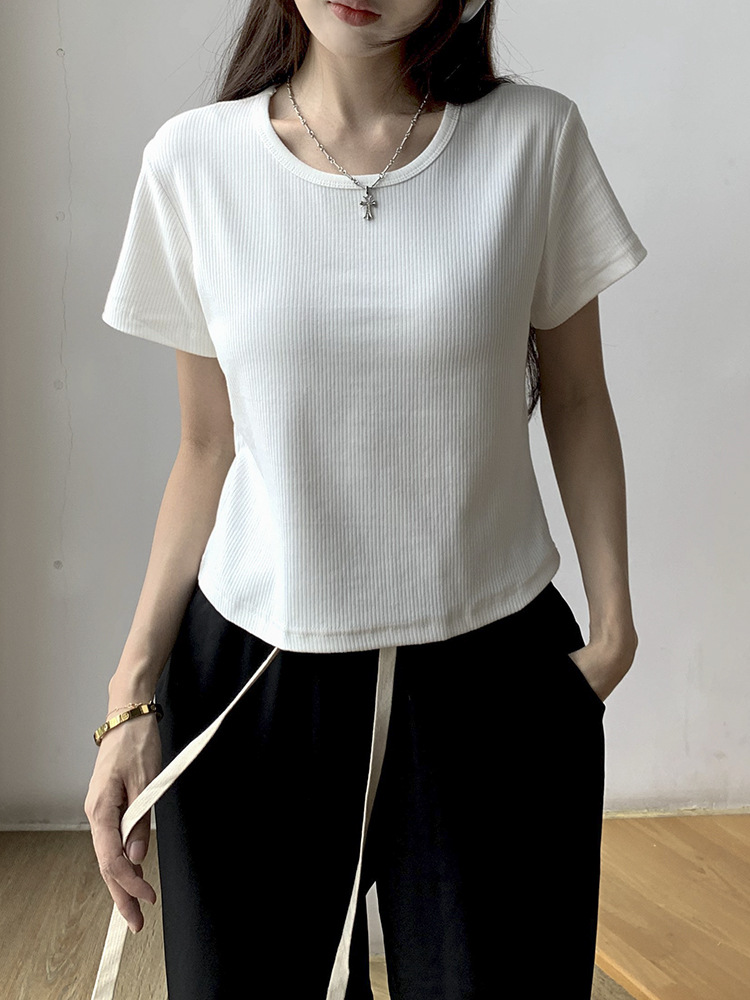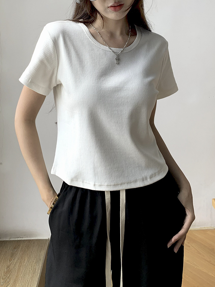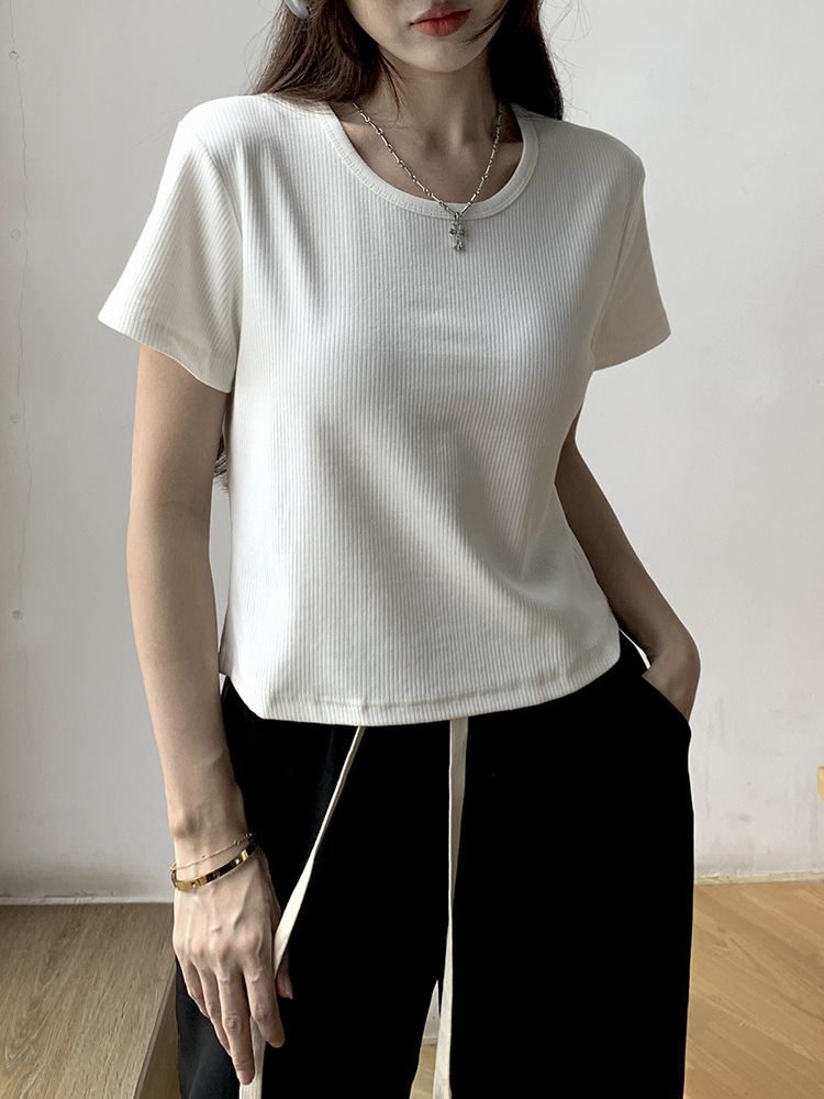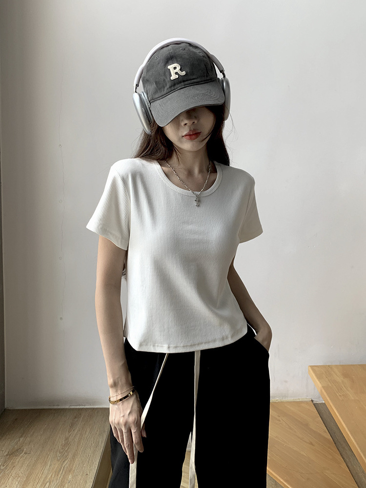 | nameOriginal | Summer new round neck all-match pit slim-fit shoulder short-sleeved T-shirt women's ins hot girl slimming short T-shirt top |