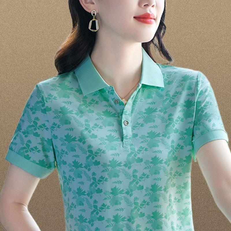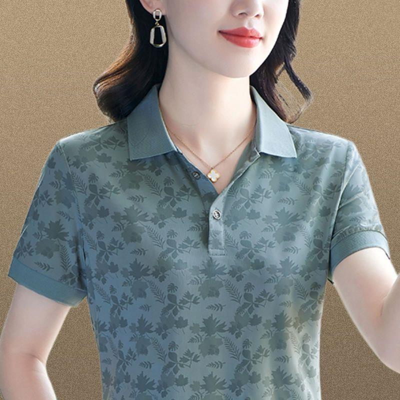 | nameOriginal | Summer New Short-sleeved T-shirt Women's Fashionable Stylish Age-reducing Mother's Polo Shirt Printed Top Loose All-match Lapel |