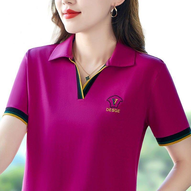 | nameOriginal | Summer New Short-sleeved T-shirt Women's Lapel plus size Loose Casual Middle-aged Mother's Polo Shirt Solid Color Sports Top |