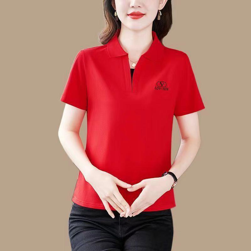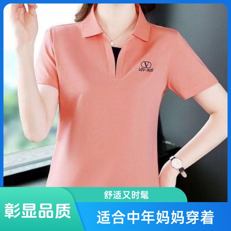 | nameOriginal | Summer New Short-sleeved T-shirt Women's Lapel plus size Loose Casual Middle-aged Mother's Polo Shirt Solid Color Sports Top |