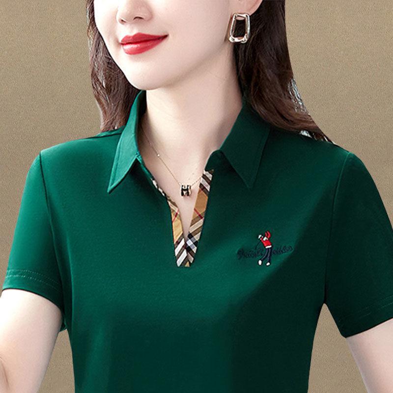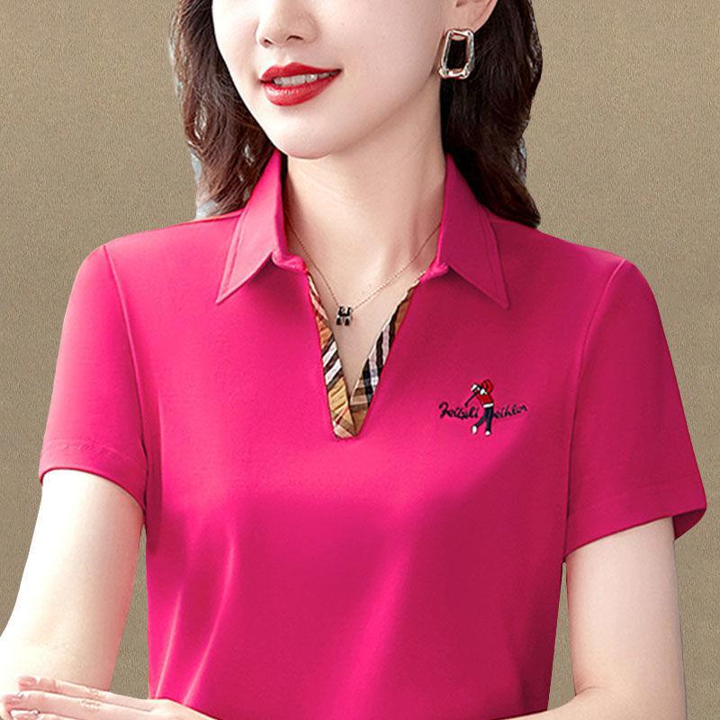 | nameOriginal | Summer New Short-sleeved T-shirt Women's Lapel plus size Loose Casual T-shirt Middle-aged Mom Polo Shirt Solid Color Top |