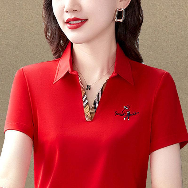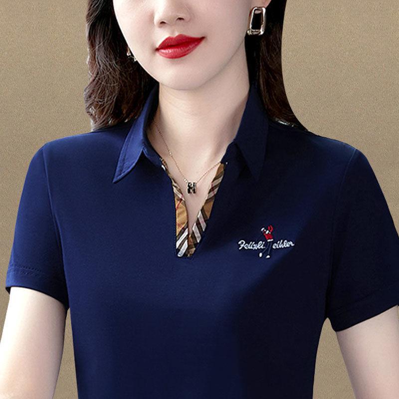 | nameOriginal | Summer New Short-sleeved T-shirt Women's Lapel plus size Loose Casual T-shirt Middle-aged Mom Polo Shirt Solid Color Top |