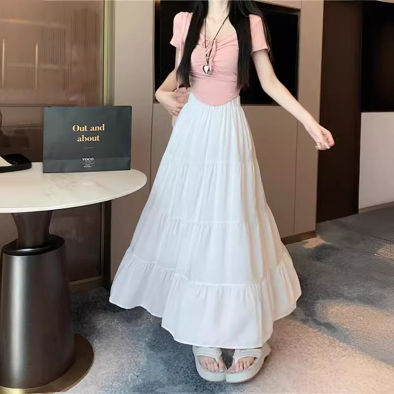 | nameOriginal | Summer new skirt women's Korean-style A- line skirt high waist slimming stitching cake skirt versatile mid-length skirt |