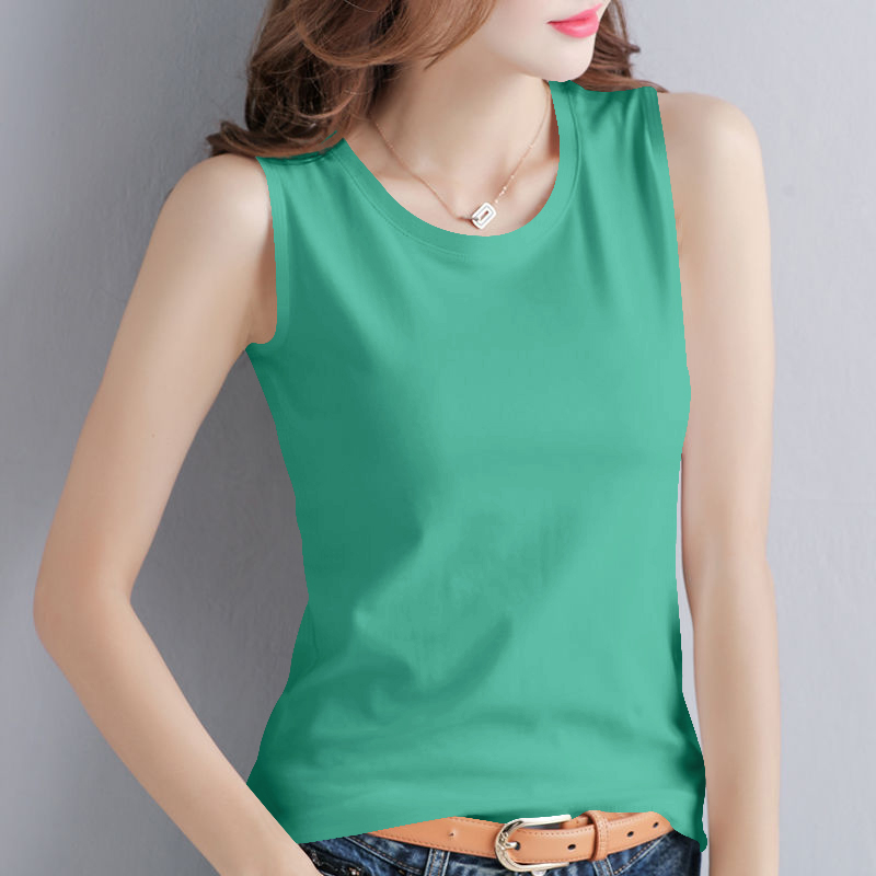 Summer New Sleeveless Vest Women's Outer Wear Loose Casual plus size All-match White Round Neck T-shirt Women's Cotton