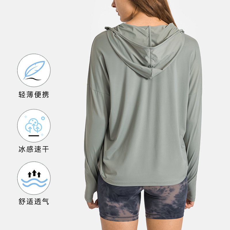 Summer New Sports Leisure Outdoor Mountaineering Sunscreen Hooded Ice Silk Ultra-thin Fitness Yoga Jacket