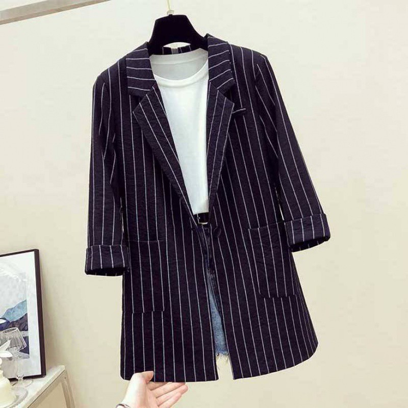 | nameOriginal | Summer New Striped Small Suit Jacket Women's Mid-length Internet Celebrant Casual Suit Sunscreen Korean Style Thin Breathable Suit |