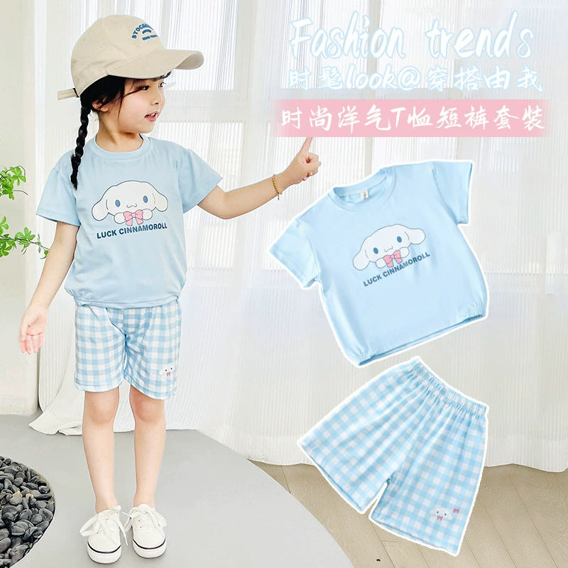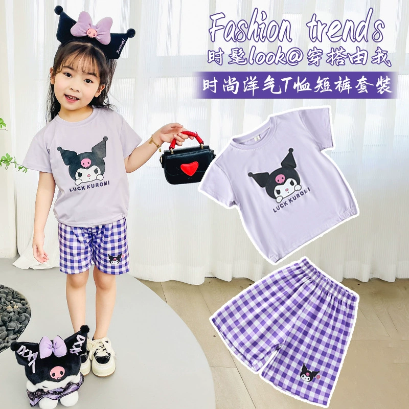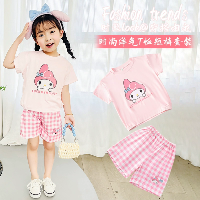 | nameOriginal | Summer new style 2024 girls casual cartoon suit baby Kurome Melody T-shirt plaid shorts suit |
