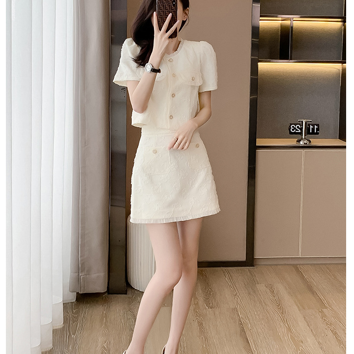 | nameOriginal | Summer New Style Chanel Style Fashion suit Women's Elegant Socialite Jacquard Top Short Skirt Two-piece Set |