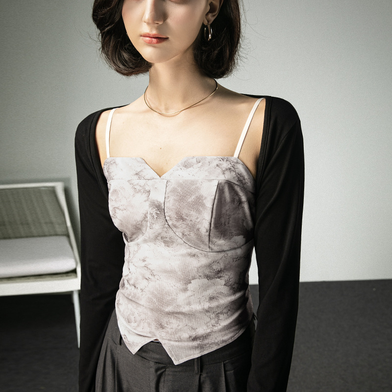 Summer New Style Chic Sling Printed Inner Base Vest Design Sense Small Shirt
