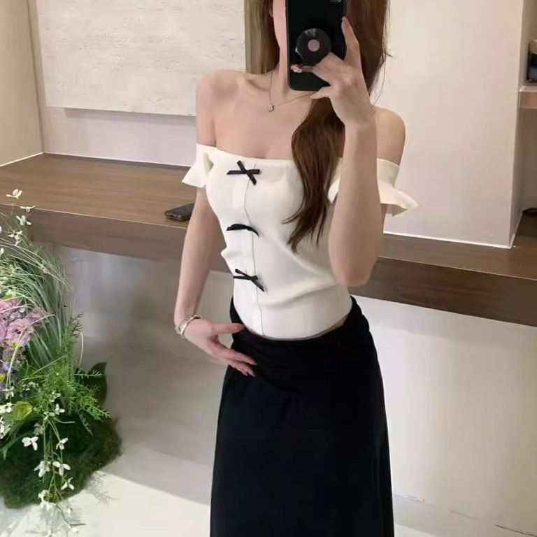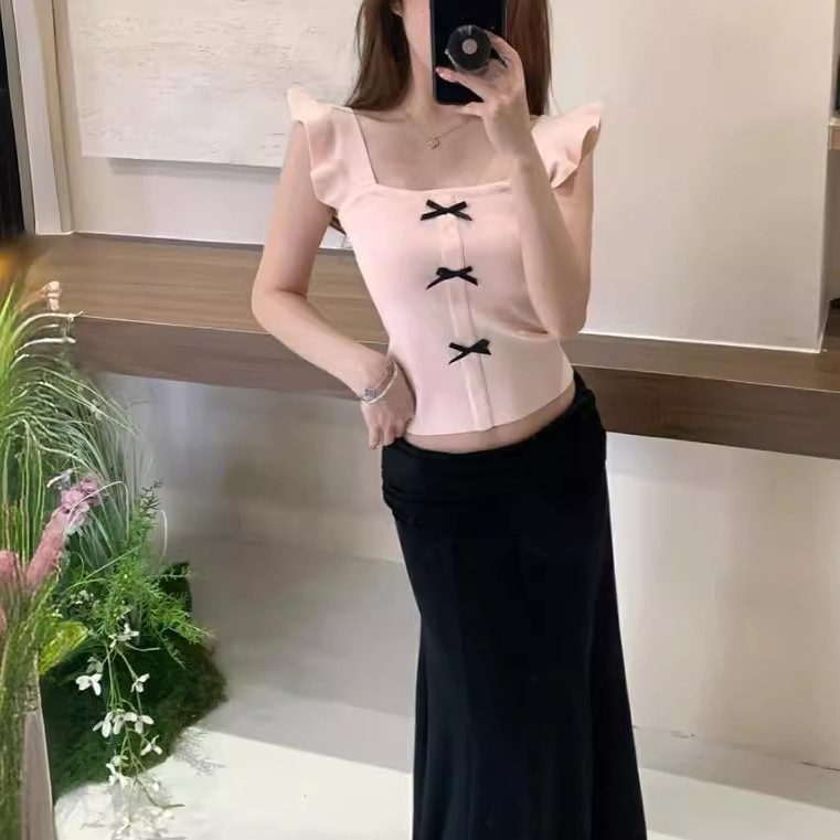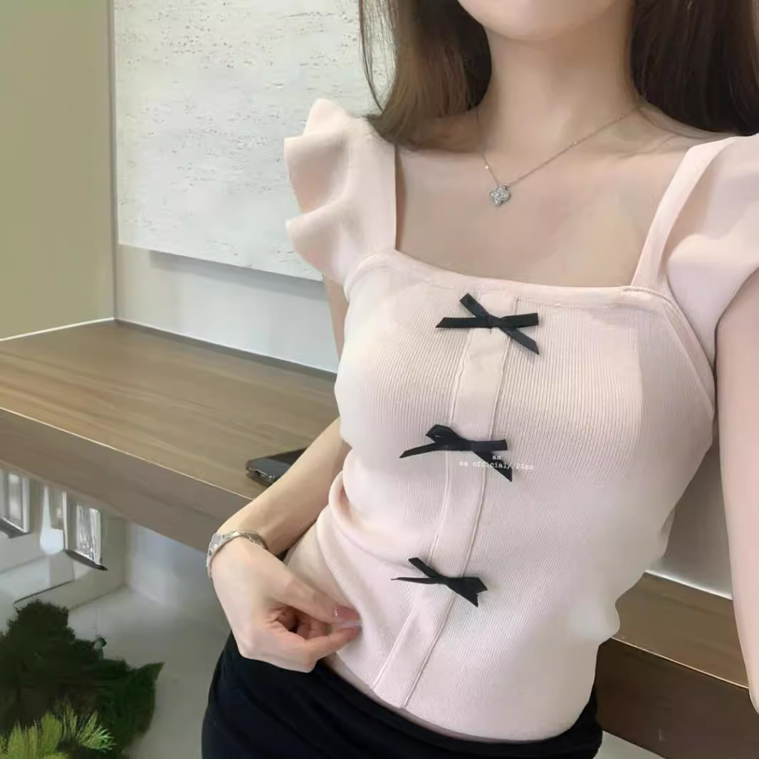 | nameOriginal | Summer New Style High-end French Style Sweet Age-reducing Flying Sleeve Bow Slim Sweater Top for Women |
