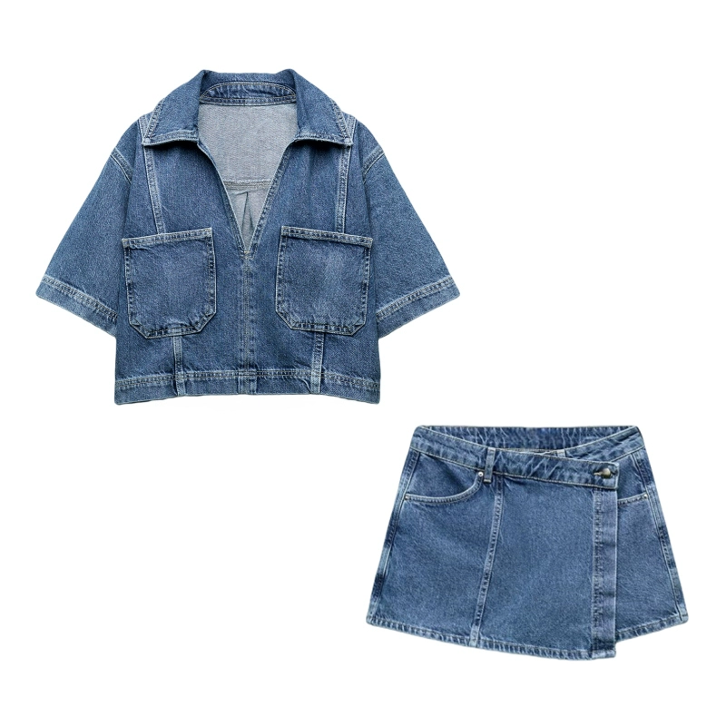| nameOriginal | Summer new style lapel mid-waist culottes denim shirt |