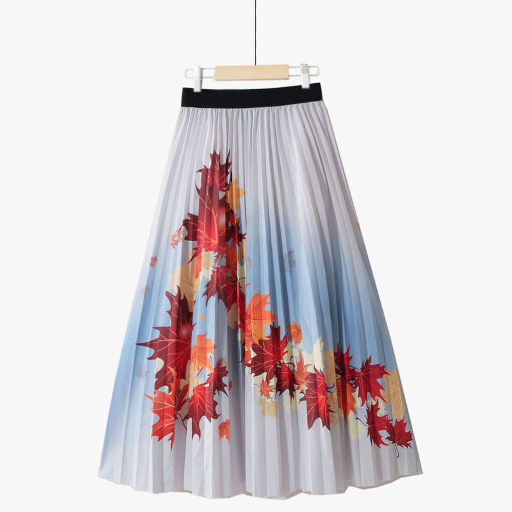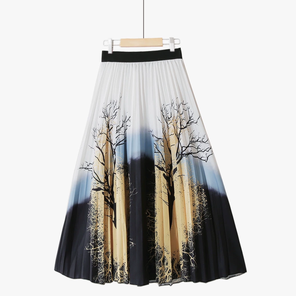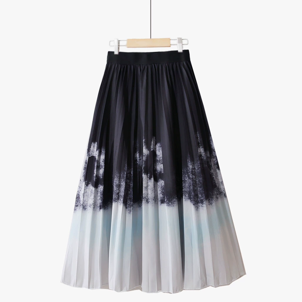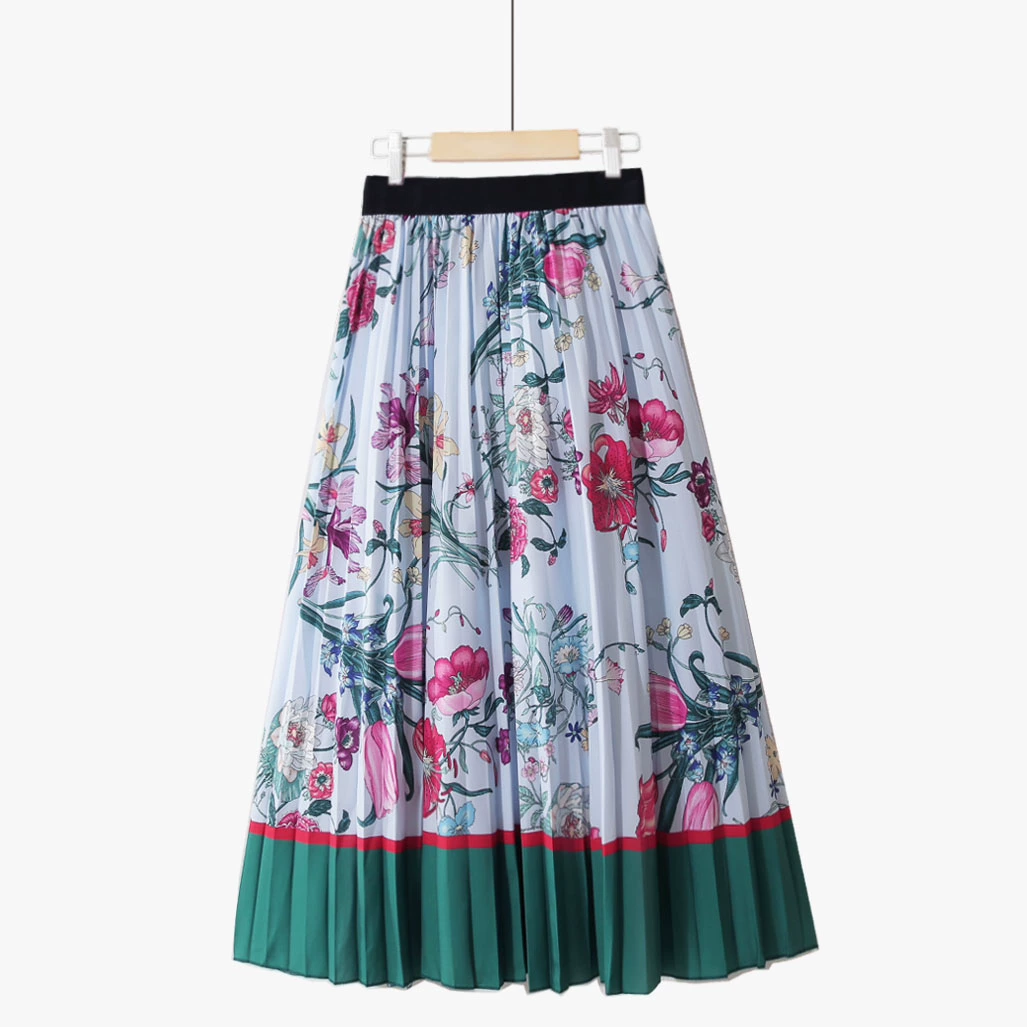 | nameOriginal | Summer new style pleated gradient flower fairy contrast color high waist retro elegant printed chiffon fashion mid-length skirt |
