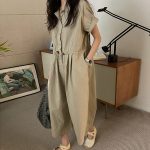 Summer new style short-sleeved pleated three-point casual jumpsuit