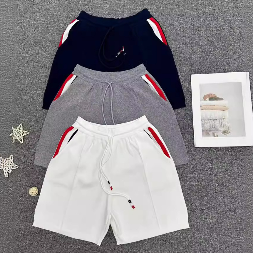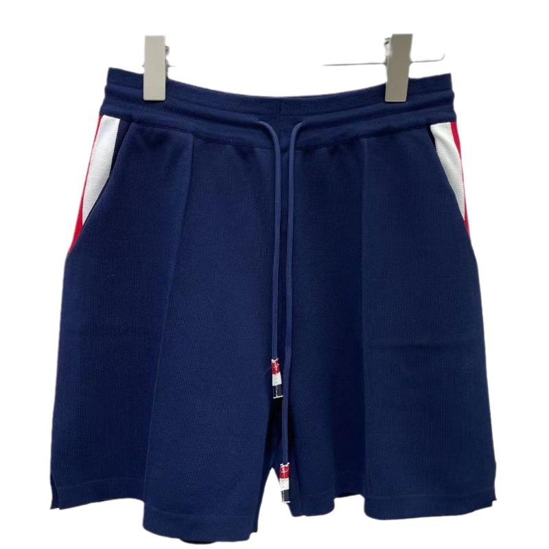 Summer New Style TB British Style Women’s Clothing Contrast Color Pocket Striped Lace-up Elasticated High Waist Fashionable Casual Knitted Shorts