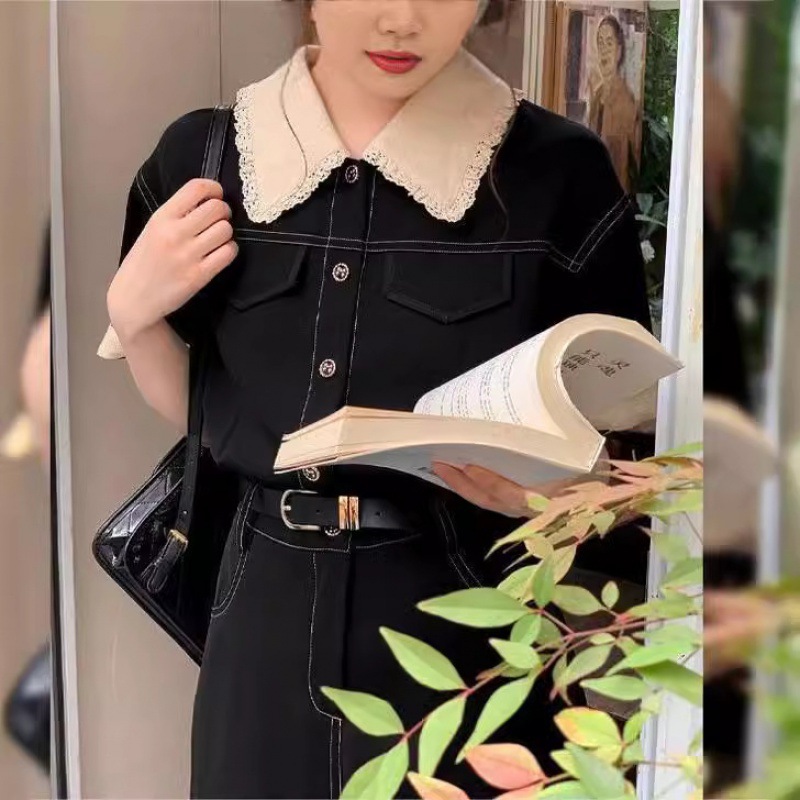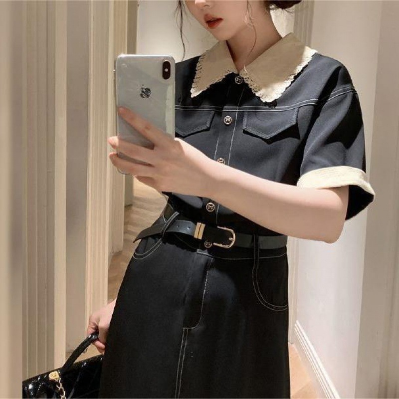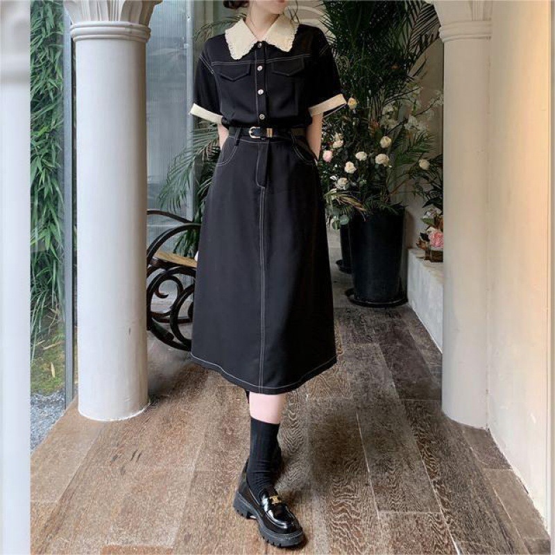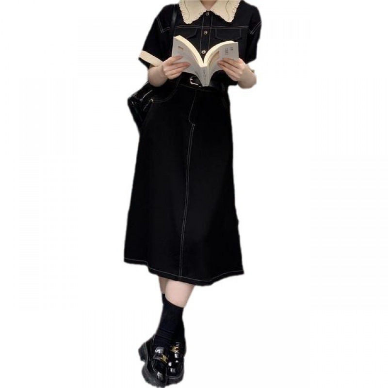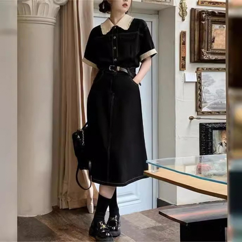 | nameOriginal | Summer New Sweet Style Black Tooling Trim Polo Collar High Waist T-Shirt Skirt Hepburn Contrast Long Skirt Ins Style |