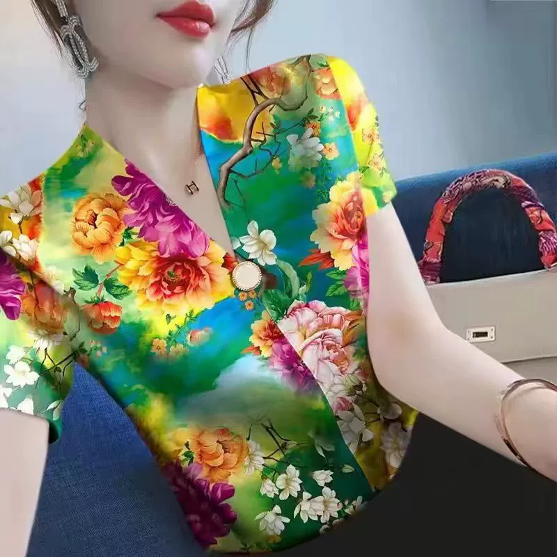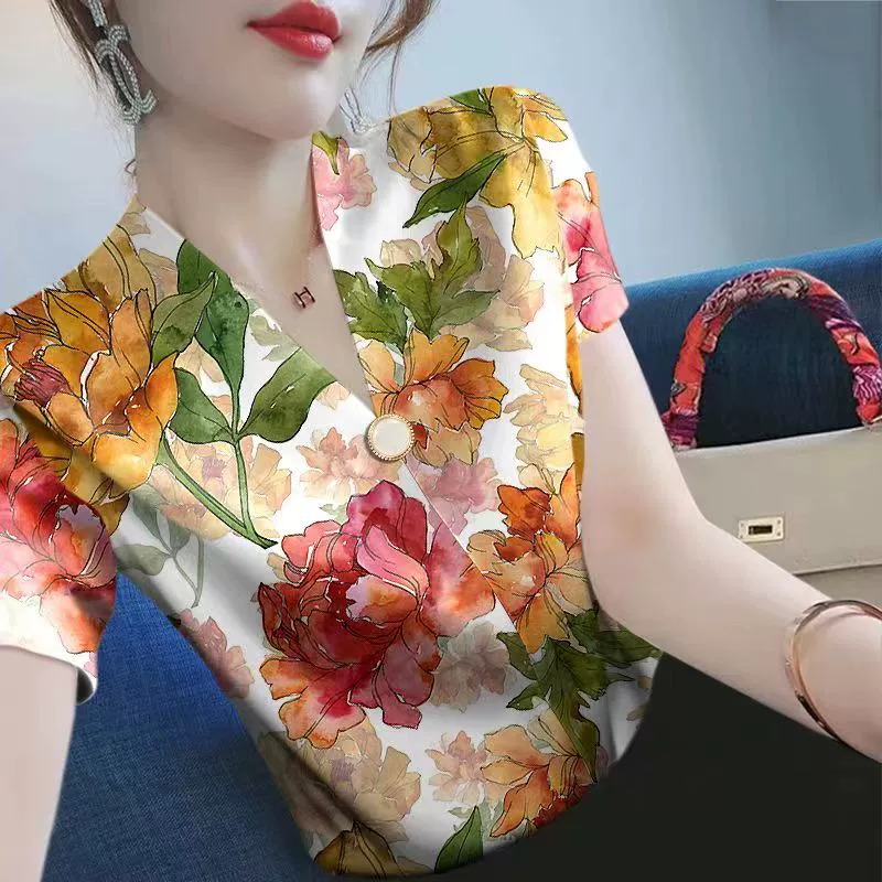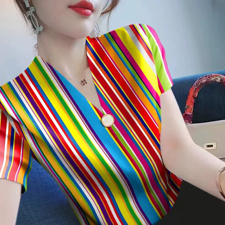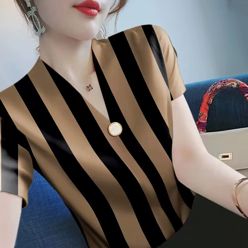 | nameOriginal | Summer new v-neck striped slim top short-sleeved T-shirt |