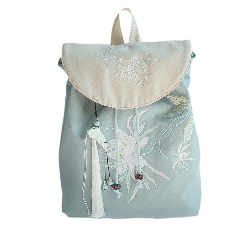 | nameOriginal | Summer New Vintage Chinese Ethnic Antique Hanfu Mori Style Artistic Embroidery Drawstring Canvas Backpack Schoolbag for Women |