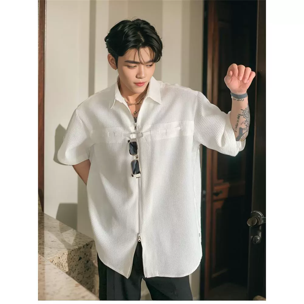 | nameOriginal | Summer new waffle design zipper shirt men's Korean version high-end niche metal handsome short-sleeved shirt trendy |