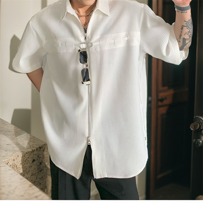 | nameOriginal | Summer new waffle design zipper shirt men's Korean version high-end niche metal handsome short-sleeved shirt trendy |
