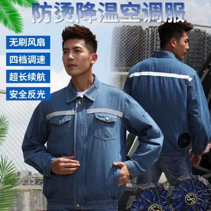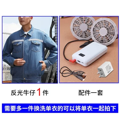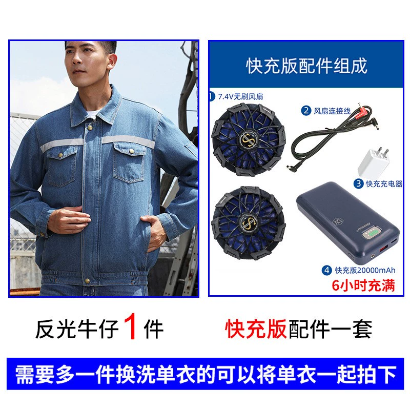 Summer new welder fan suit men's wear-resistant denim labor protection overalls black technology refrigeration welding single clothing reflective
