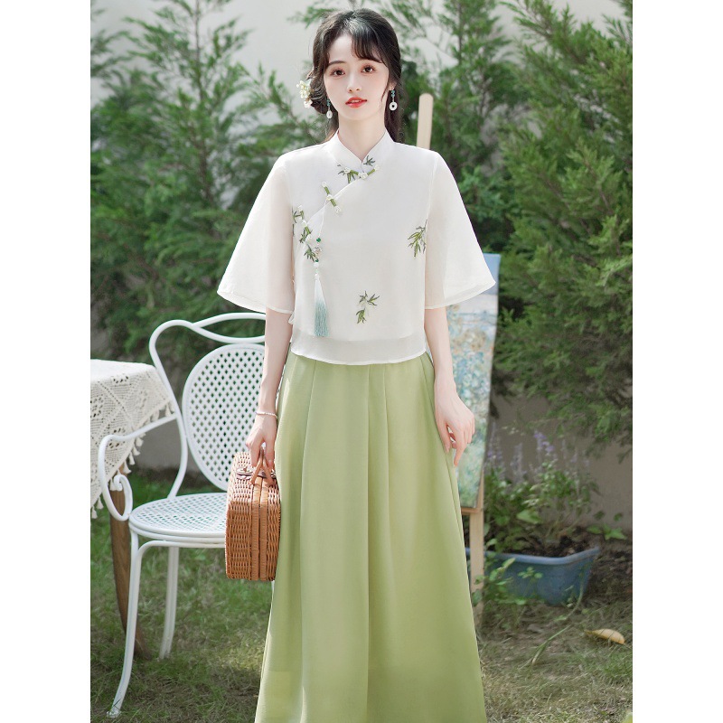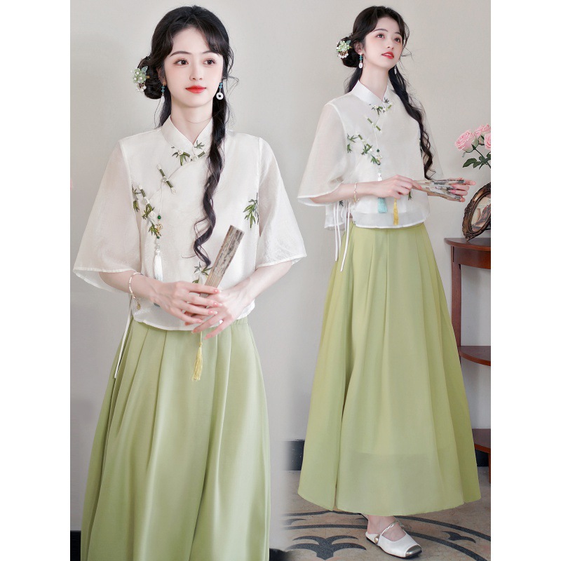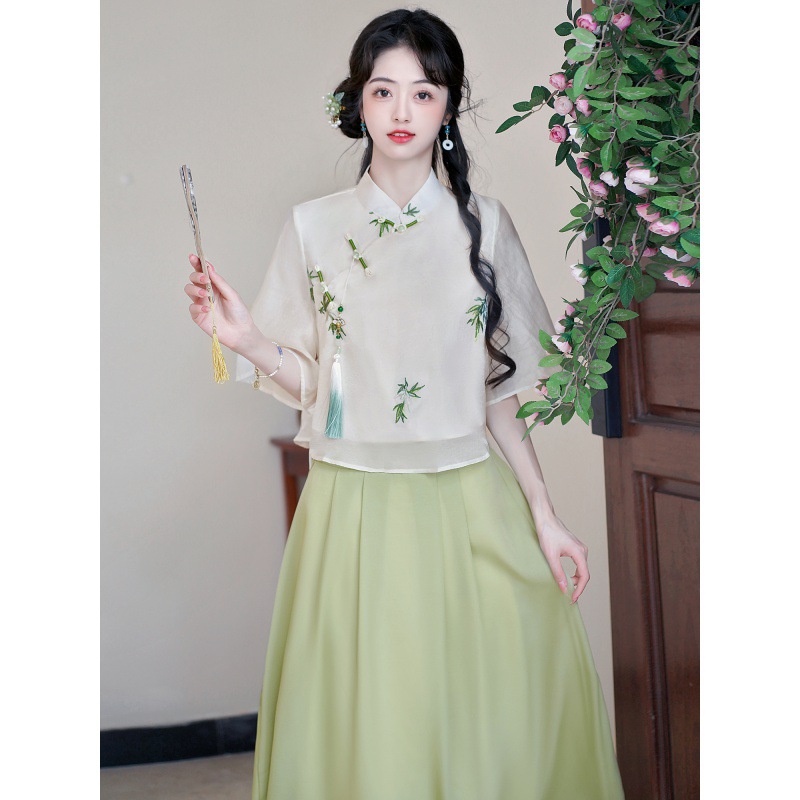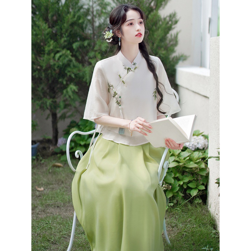 | nameOriginal | Summer New Women's Clothing Retro Art National Style Seven-point Sleeve Embroidered Vertical Collar Daily Travel Shirt Top |