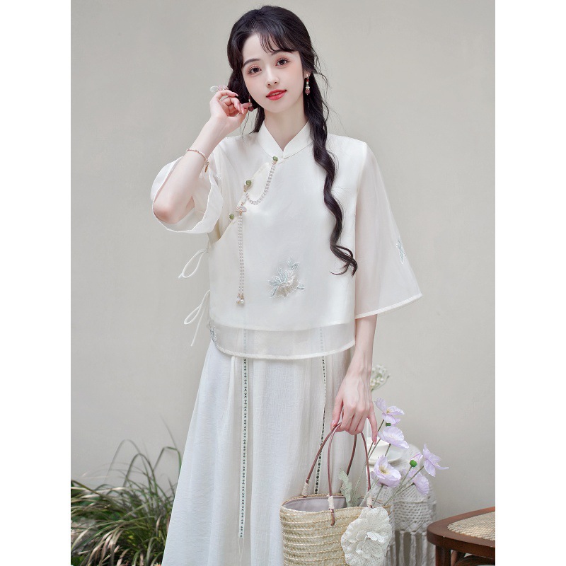 | nameOriginal | Summer New Women's Clothing Retro Artistic National Style Daily Erect Collar Embroidered Chinese Style Shirt Top |