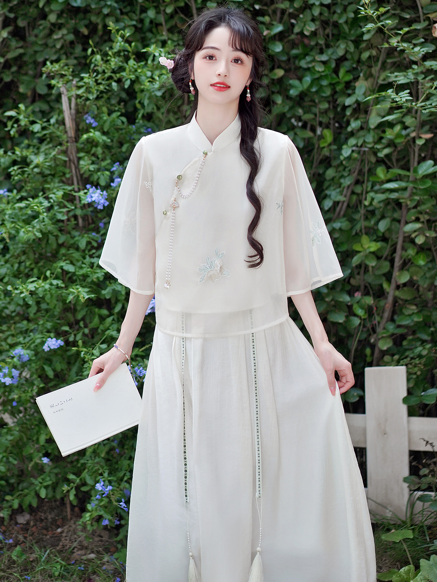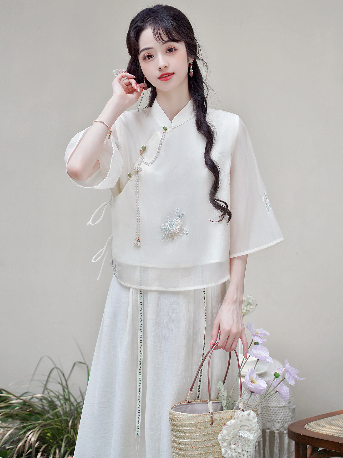 Summer New Women’s Clothing Retro Artistic National Style Daily Erect Collar Embroidered Chinese Style Shirt Top