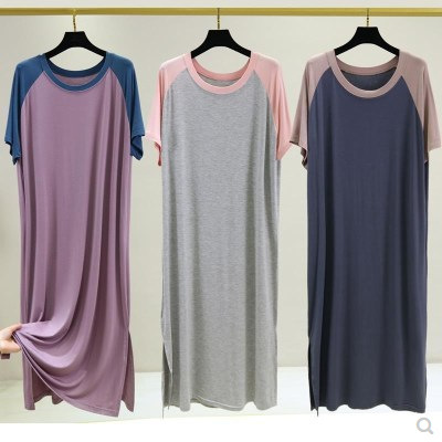 Summer new women’s dress V-neck loose plus size half sleeve nightdress thin skirt short sleeve split dress