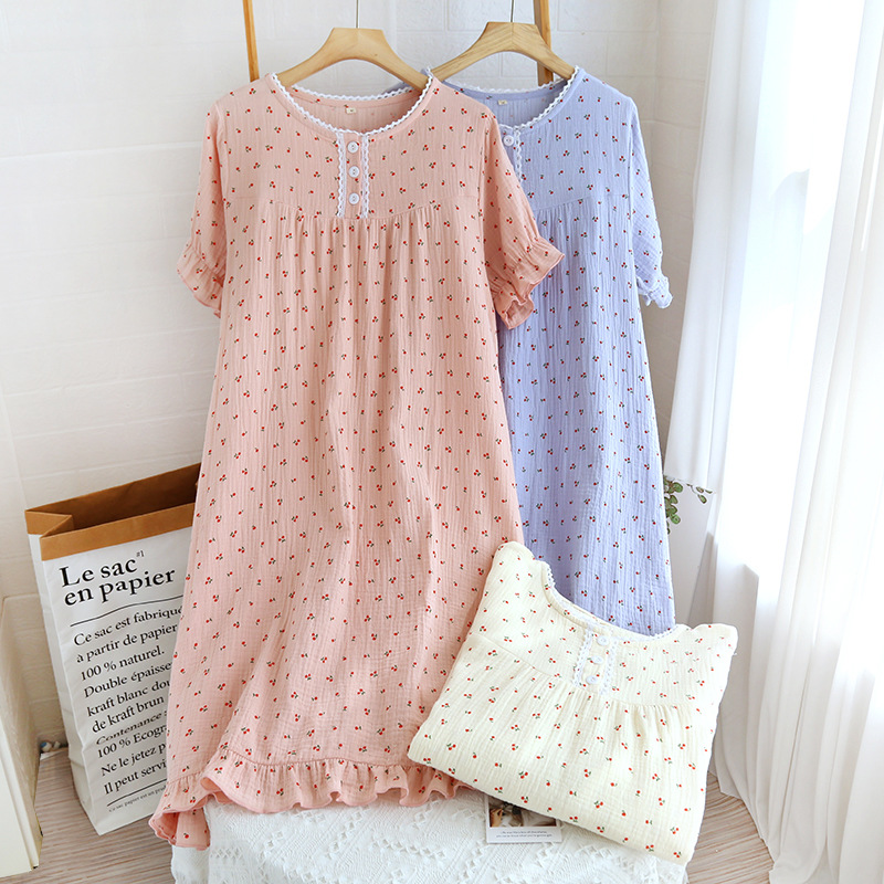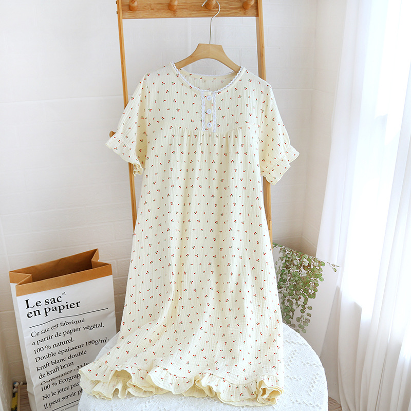 | nameOriginal | Summer New Women's Short-sleeved One-piece Long Dress Cotton Double-layer Crepe Soft and Comfortable Breathable Exterior Wear for Home |