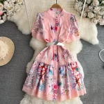 | nameOriginal | Summer niche bubble waist printed dress short sleeves |