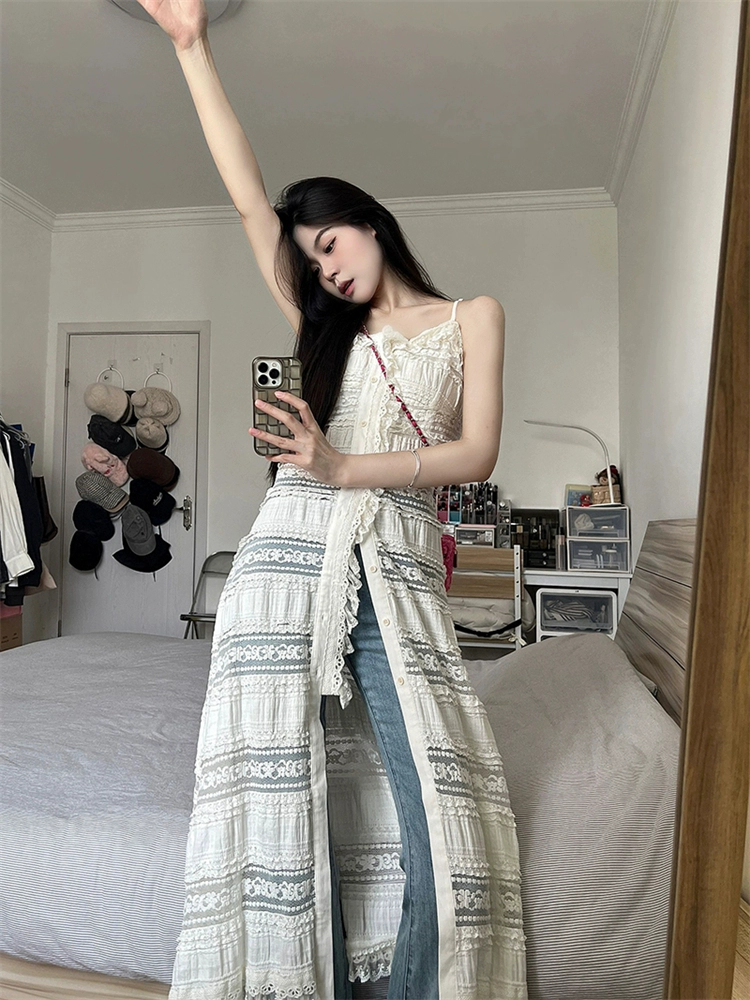 | nameOriginal | Summer niche lace layered blouse suspender dress |