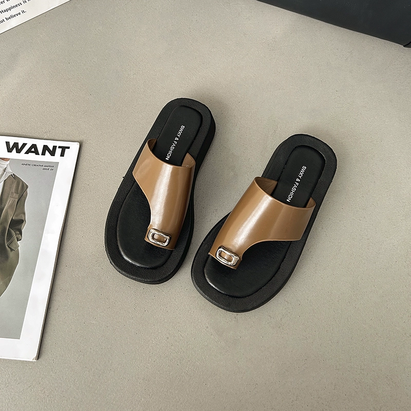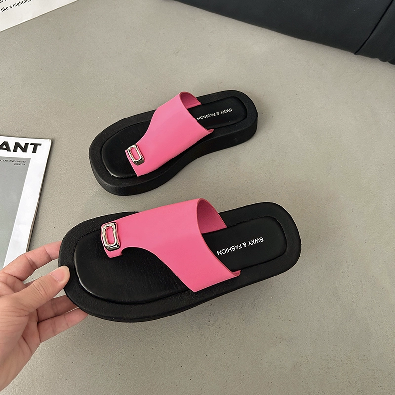 Summer niche metal toe outer wear flat beach sandals