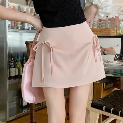| nameOriginal | Summer niche sexy hip-hugging short skirt with pink bow |