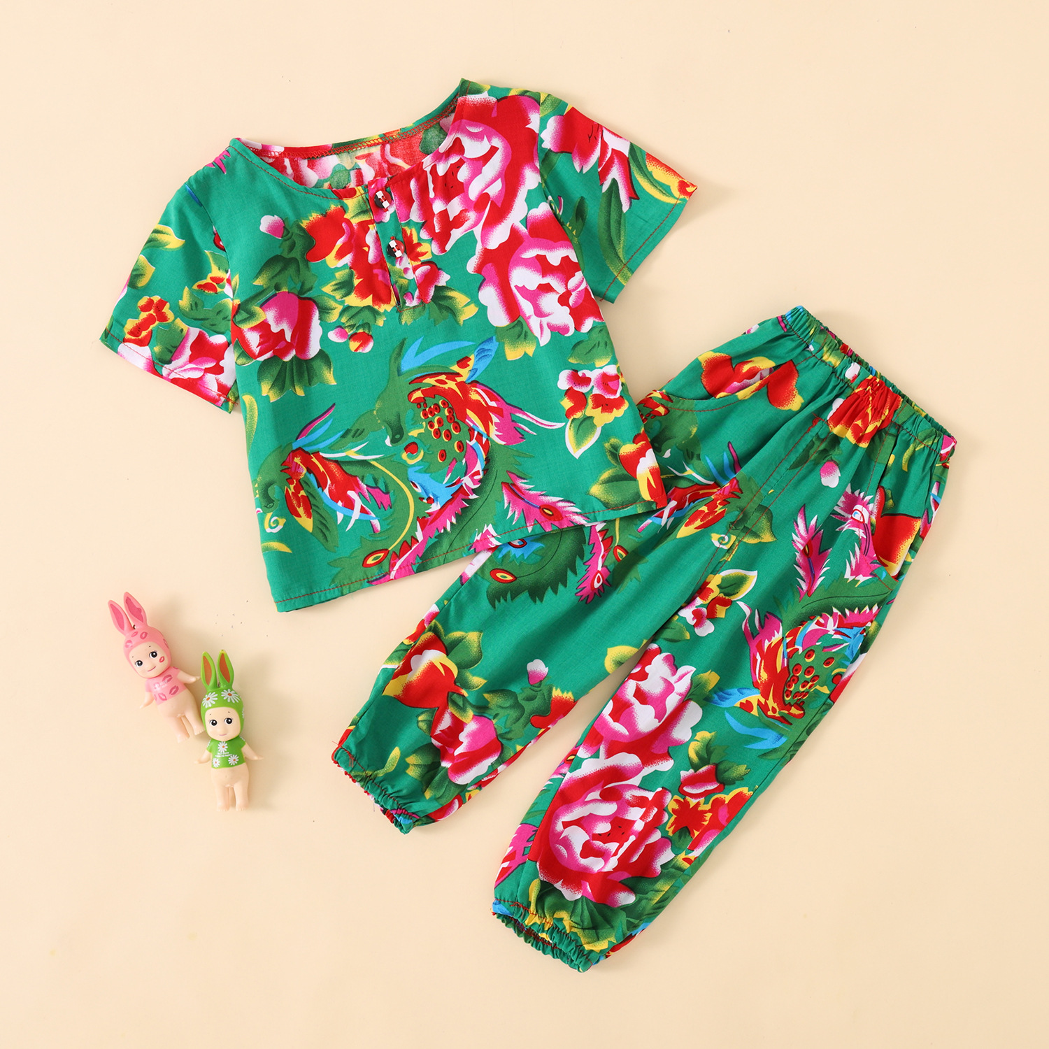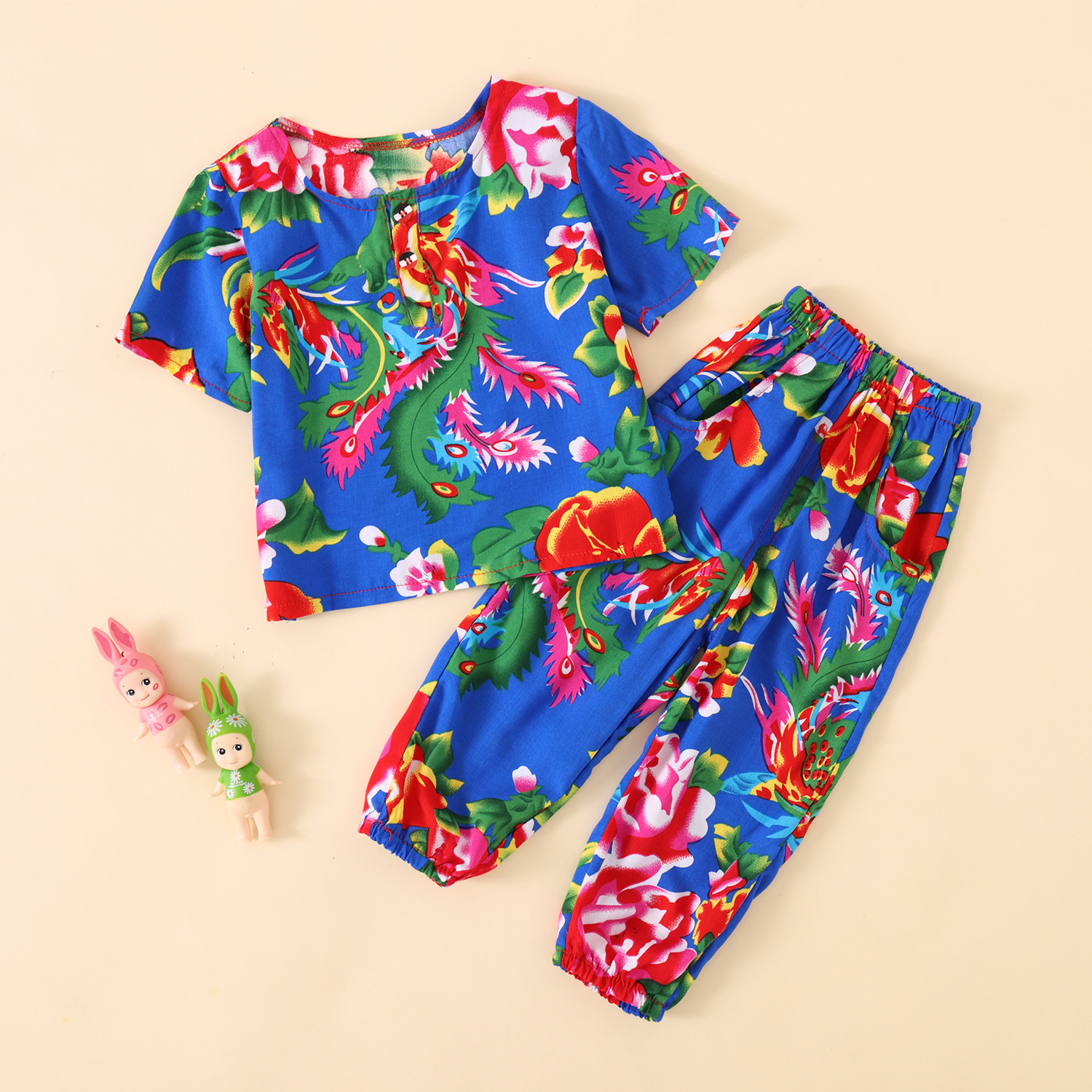 | nameOriginal | Summer Northeast Style Large Floral Cloth Short-sleeved Children's Cotton Silk Air-conditioning Clothing Pajamas Ethnic Style Home Clothes Floral Cloth Suit |