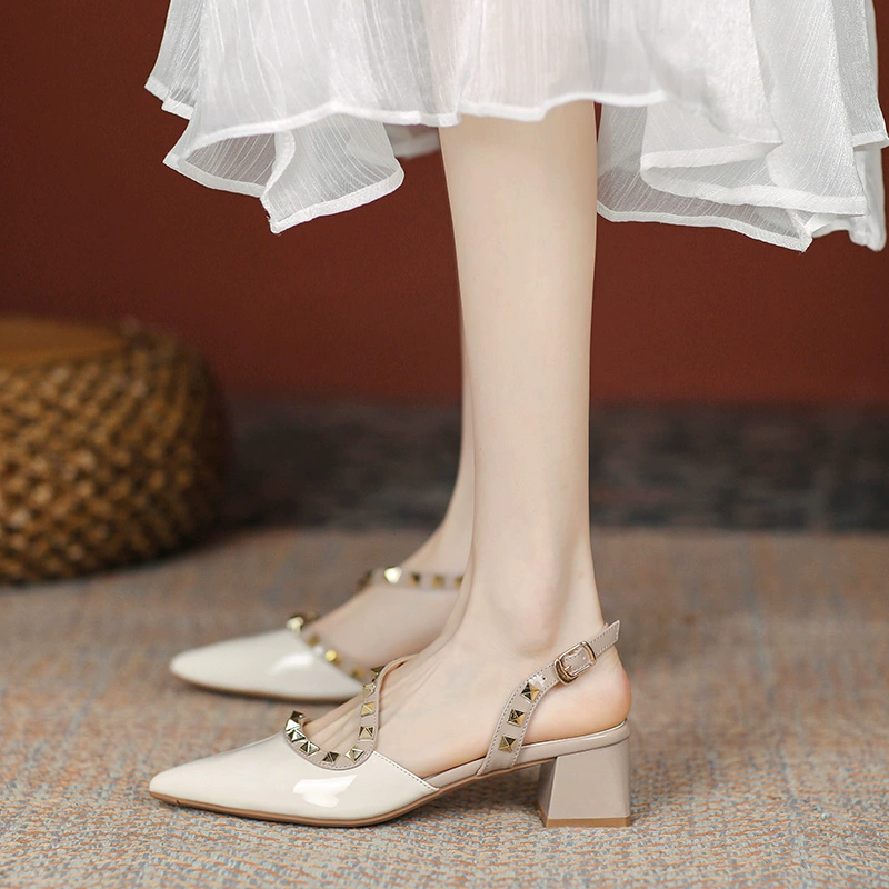 | nameOriginal | Summer nude color niche rivet toe cap back hollow high heels |