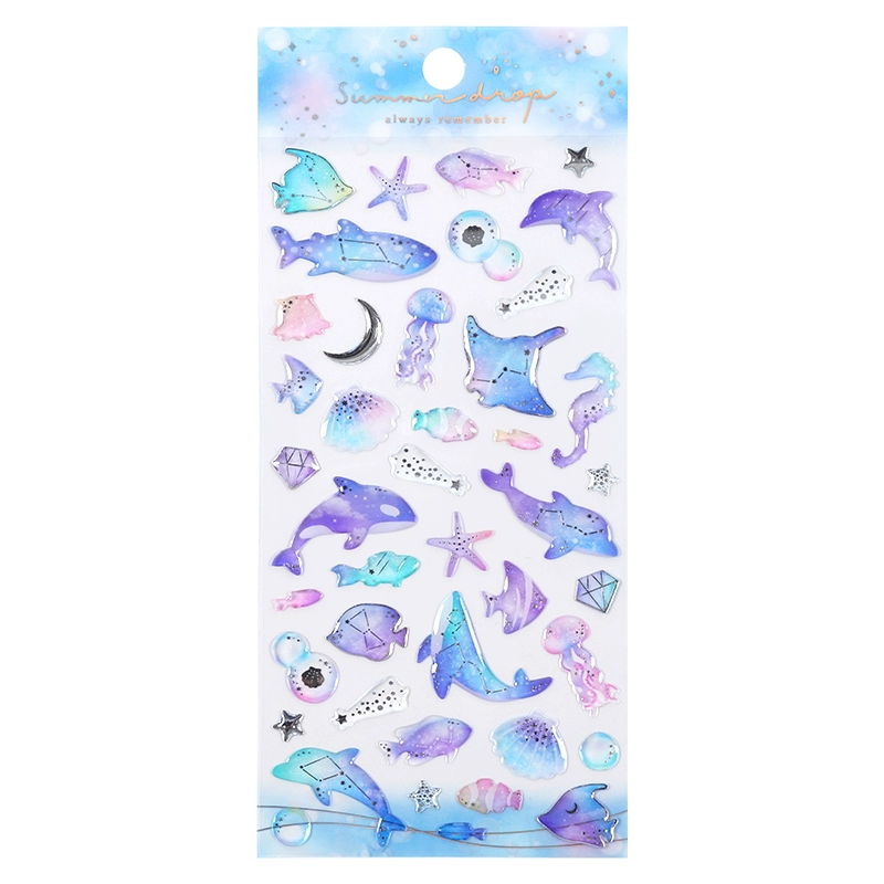 Summer ocean cool series crystal three-dimensional children's stickers girls mobile phone computer diary decorative stickers