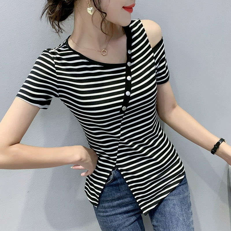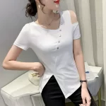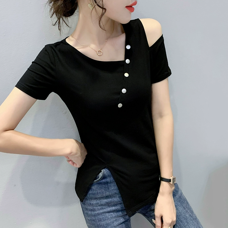 | nameOriginal | Summer off-shoulder short-sleeved slim fit irregular slit T-shirt |