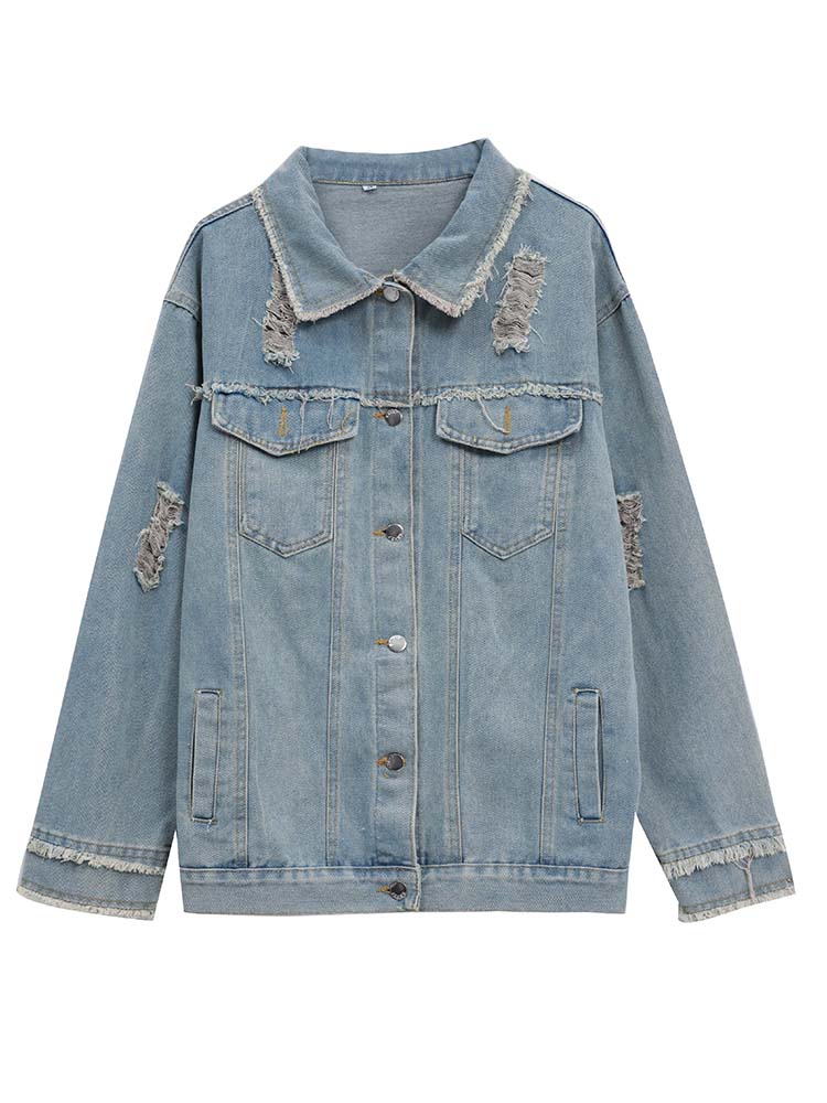 Summer Old Fried Street Denim Coat Women’s Casual Loose Design Sense Niche All-match Ripped Edge Jacket Top