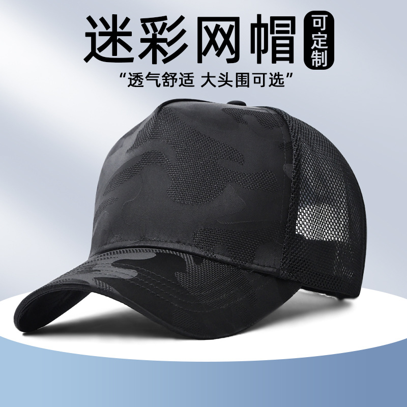 Summer Outdoor Hat Men's High Top Baseball Cap Sunscreen Sun Hat Camouflage Cap Breathable Big Head Mesh Cap