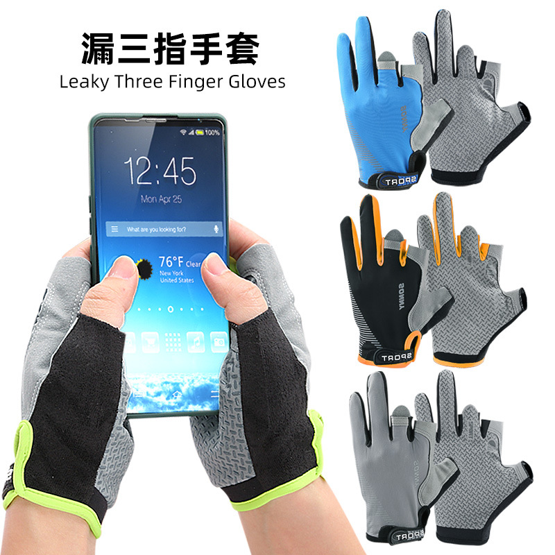 | nameOriginal | Summer outdoor riding thin gloves ice silk riding anti-ultraviolet fishing leakage three-finger takeaway express touch screen gloves |