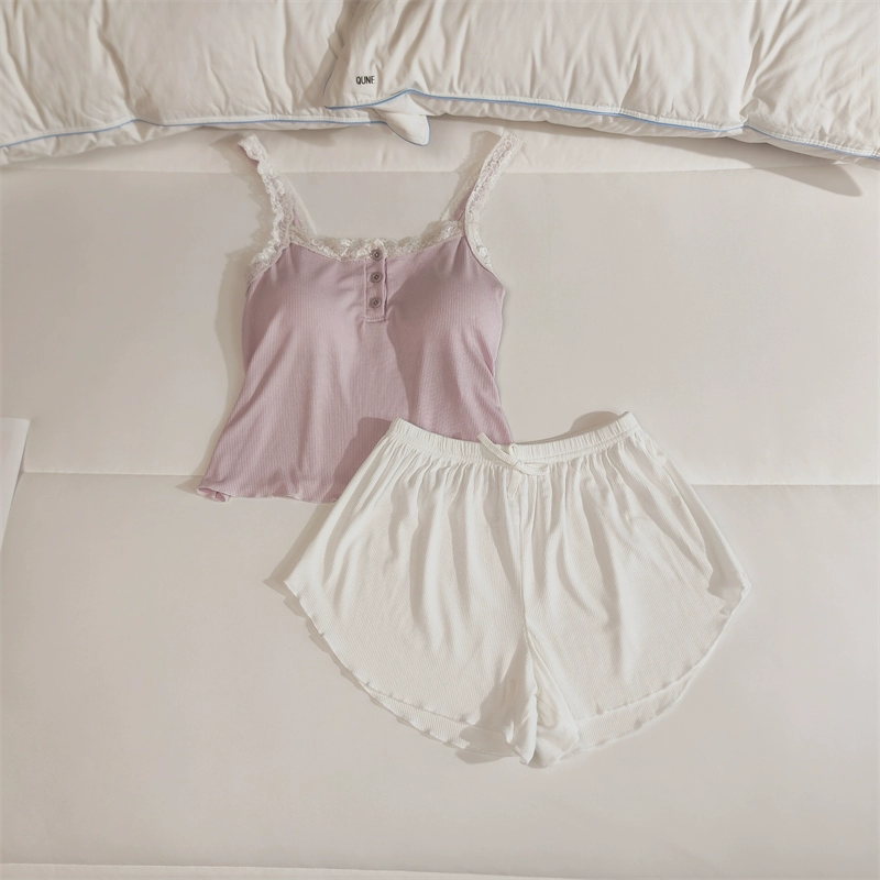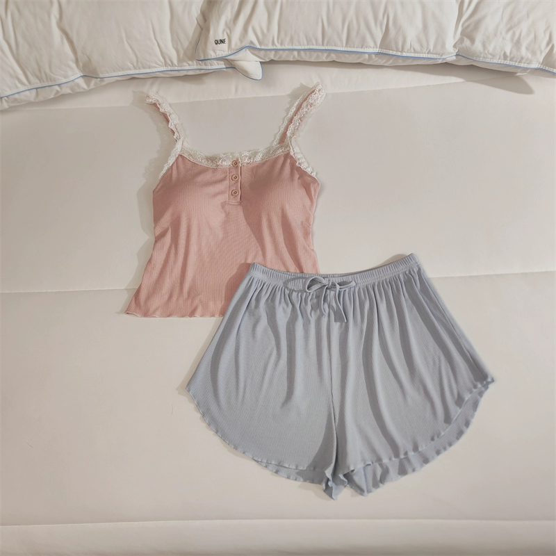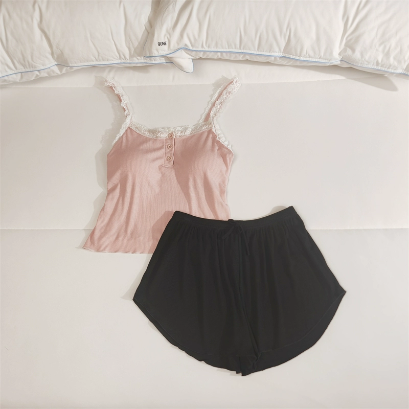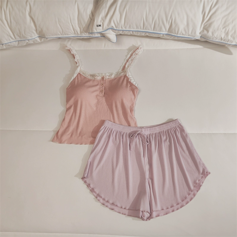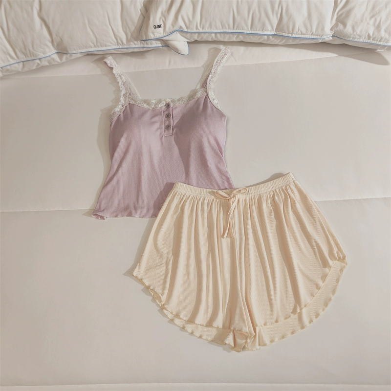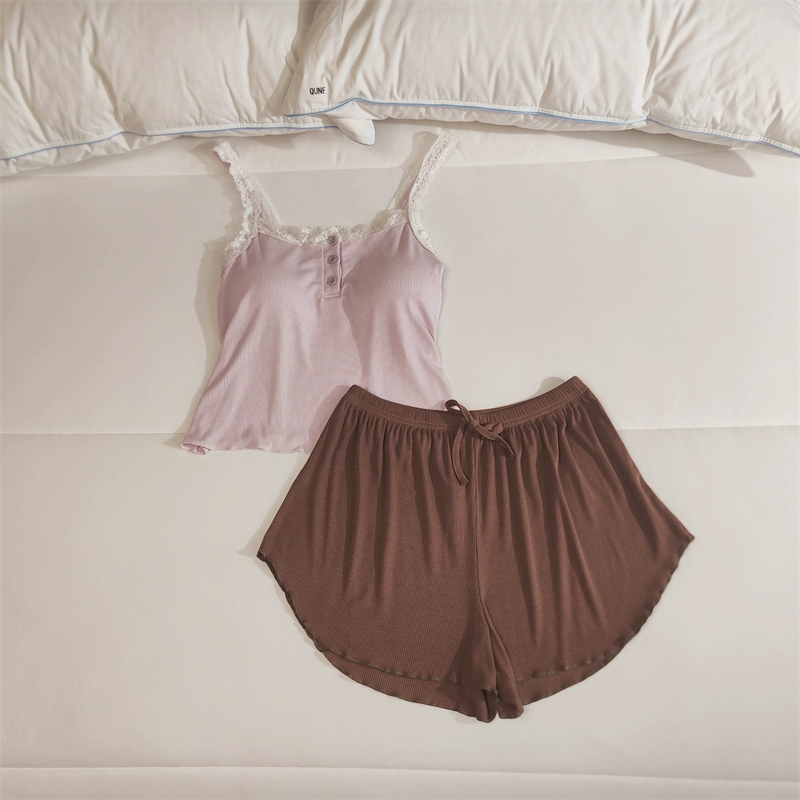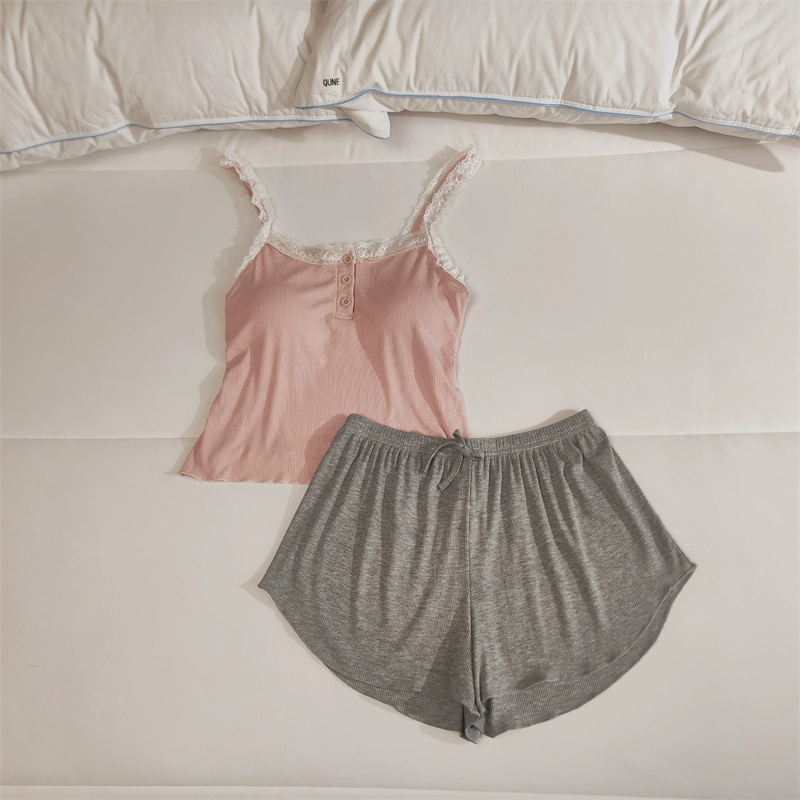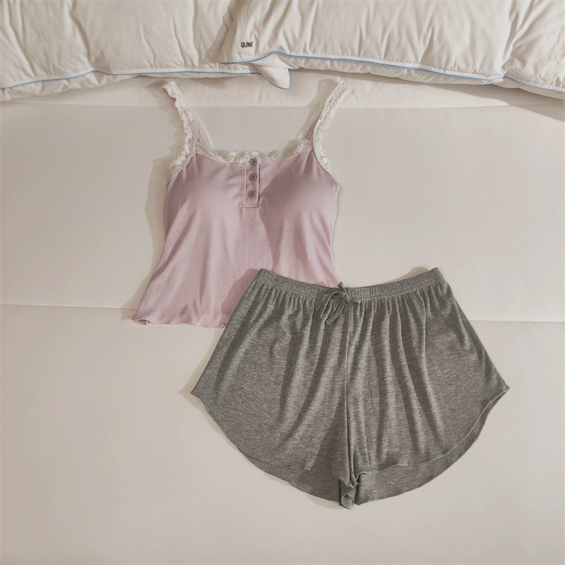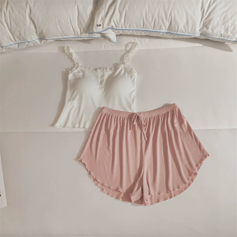 | nameOriginal | Summer pajamas for women with breast pads, one-piece suspender shorts two-piece set, new sweet and pure style modal home clothes |
