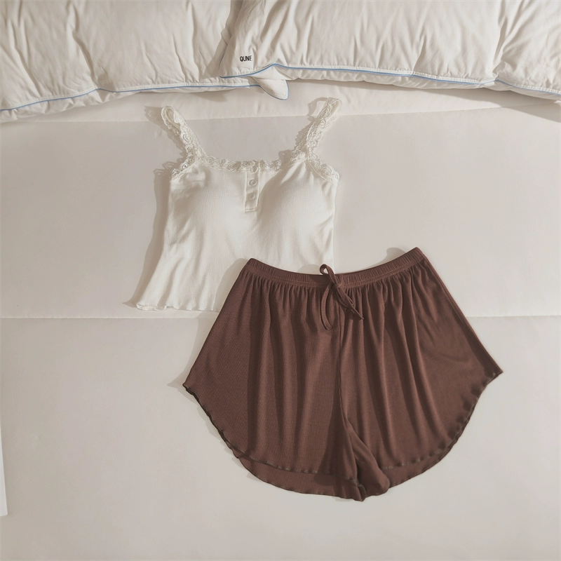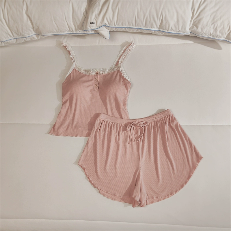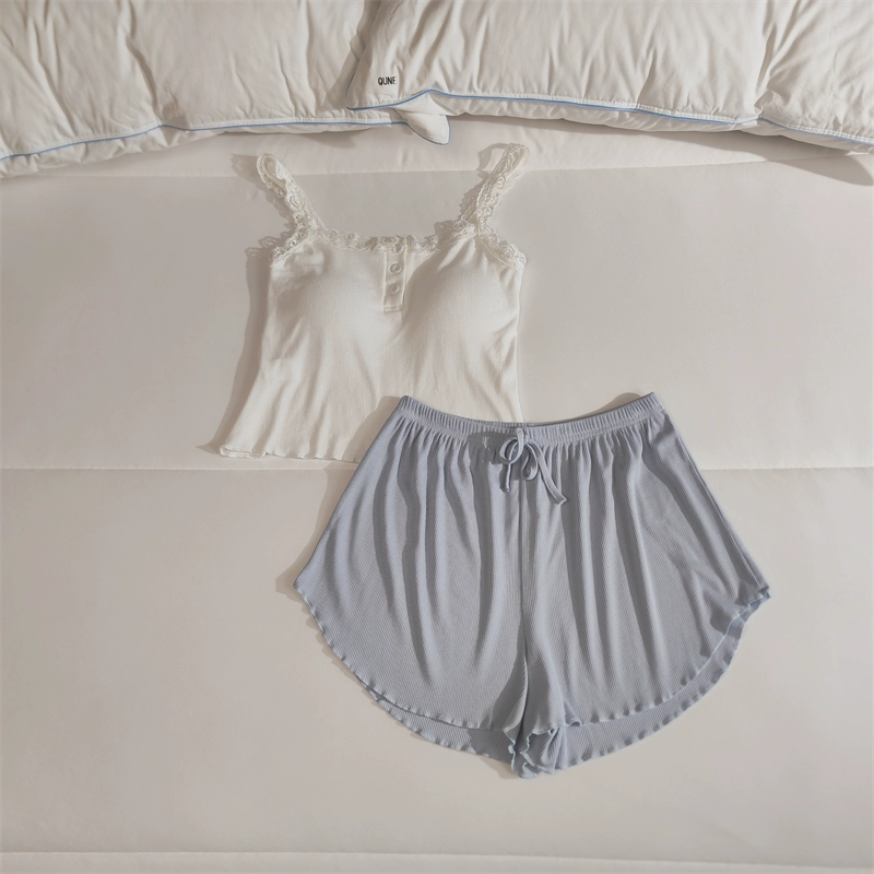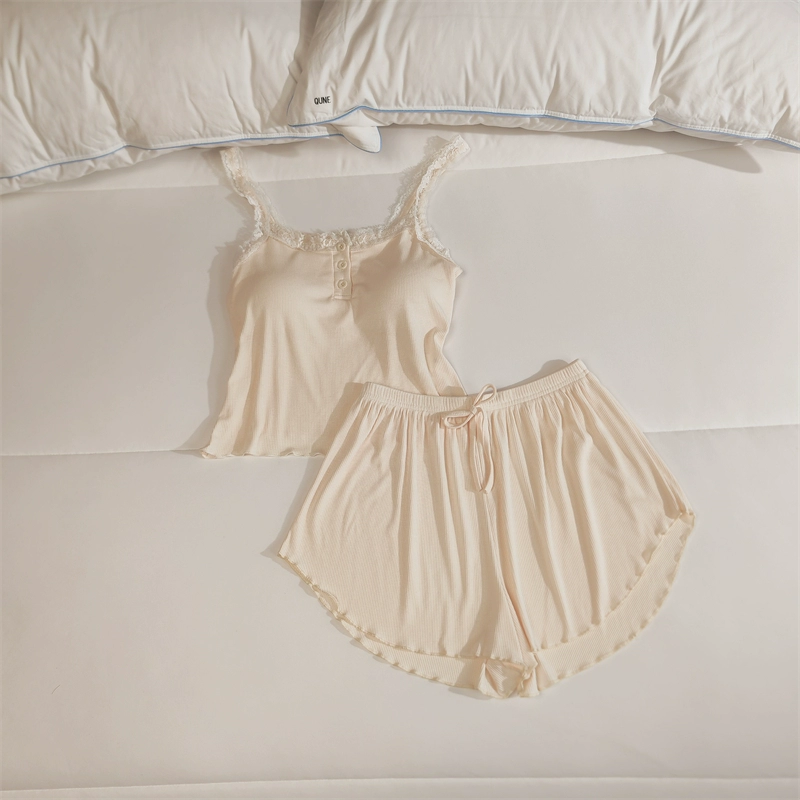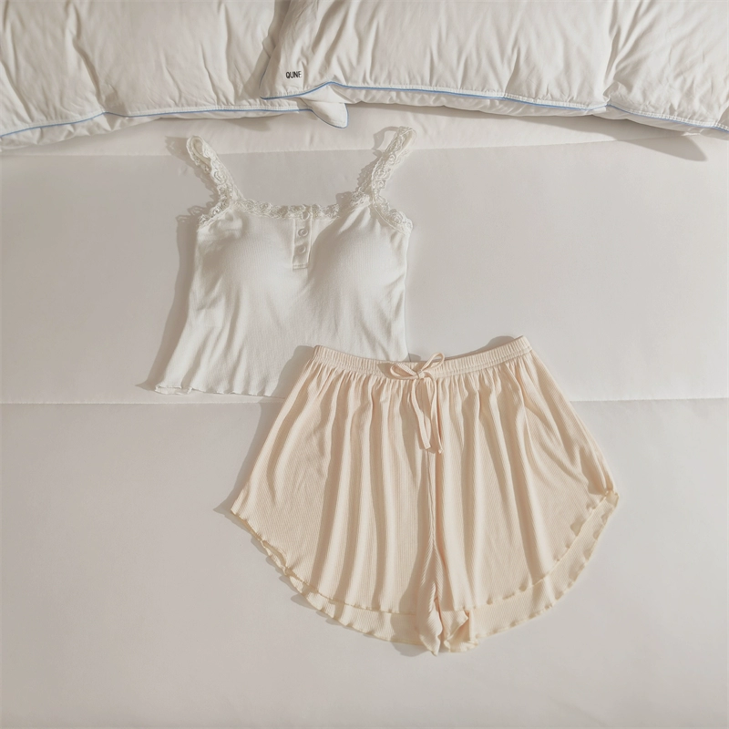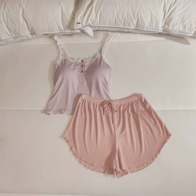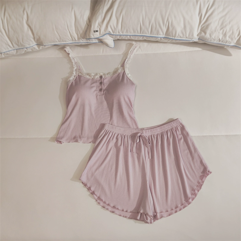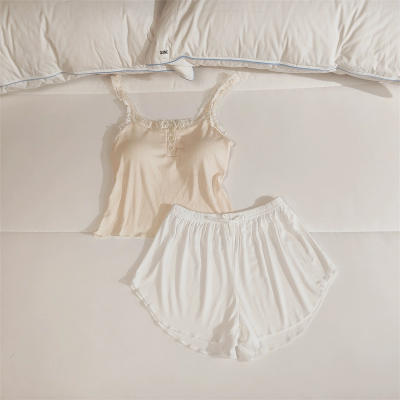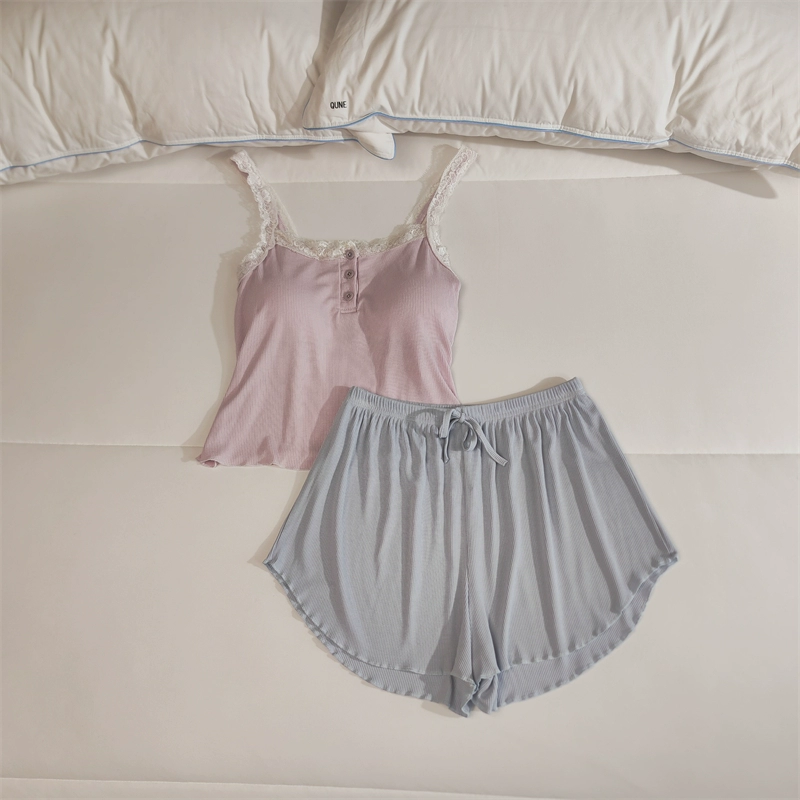 | nameOriginal | Summer pajamas for women with breast pads, one-piece suspender shorts two-piece set, new sweet and pure style modal home clothes |