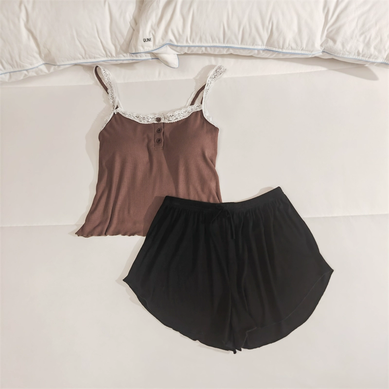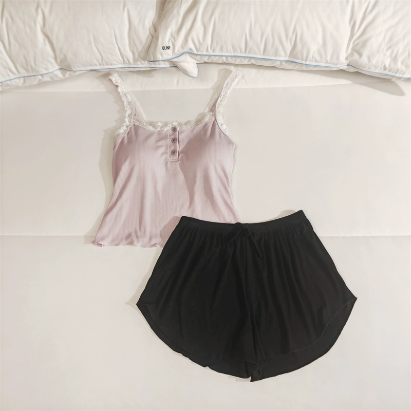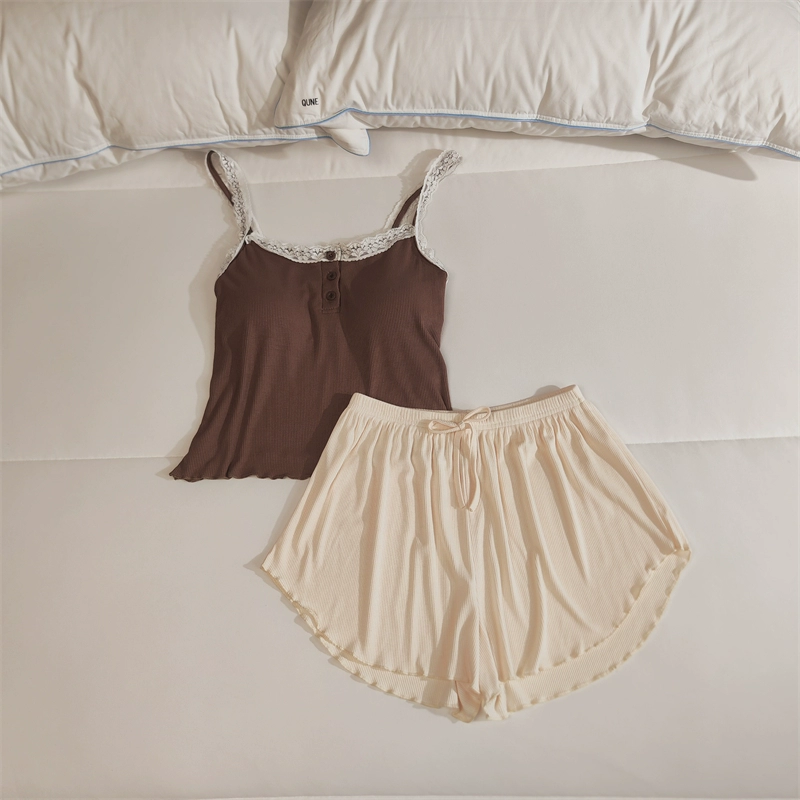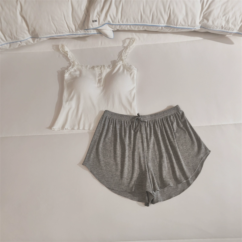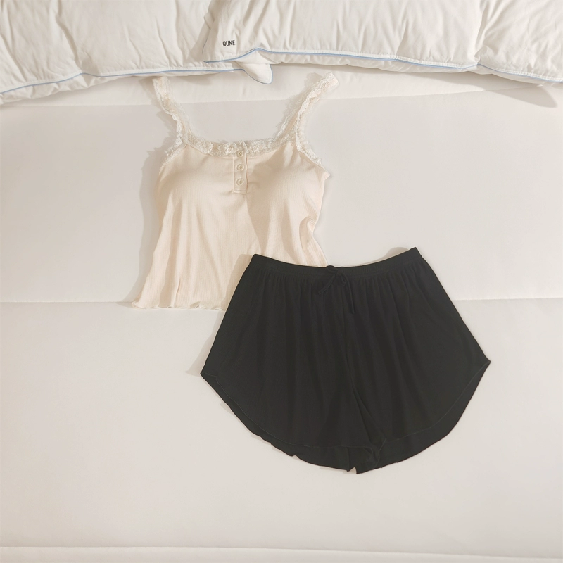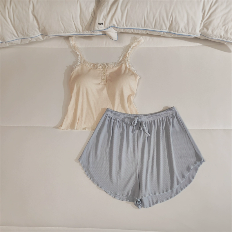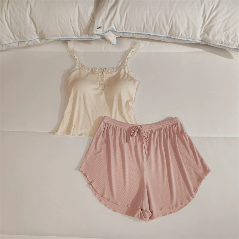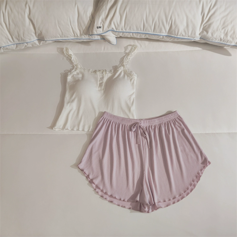 | nameOriginal | Summer pajamas for women with breast pads, one-piece suspender shorts two-piece set, new sweet and pure style modal home clothes |