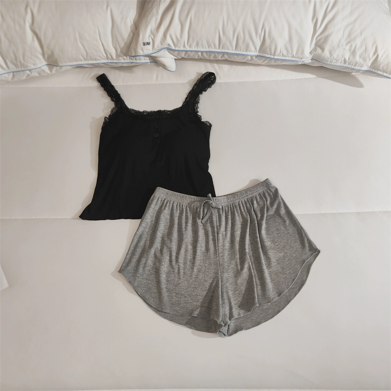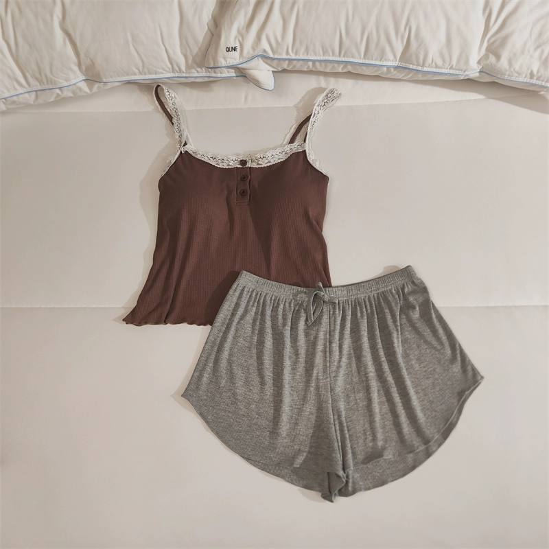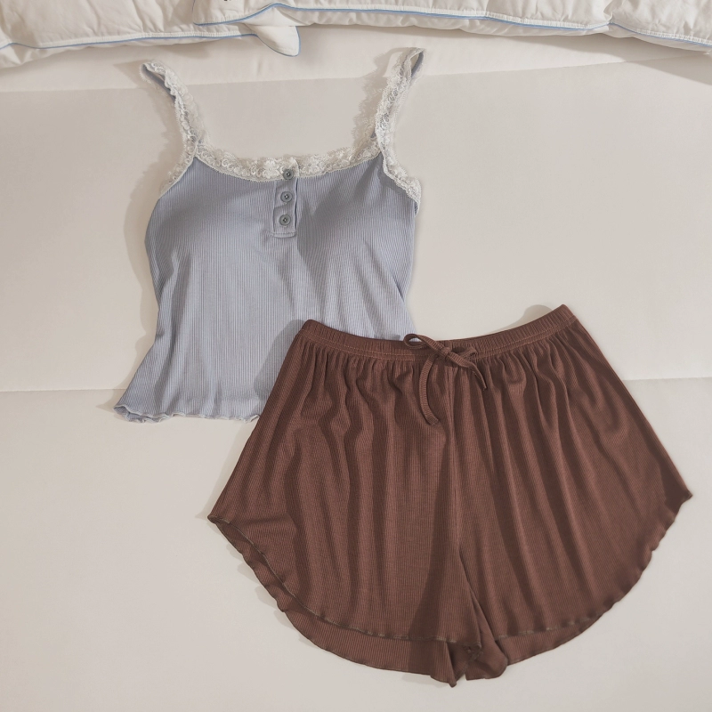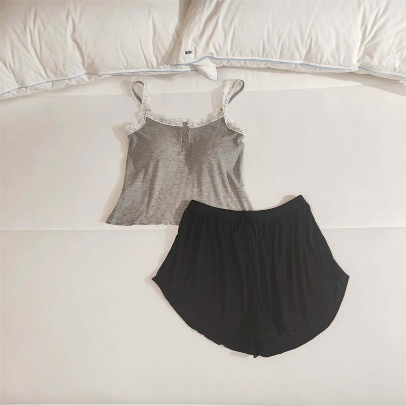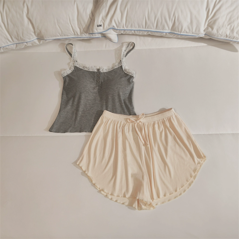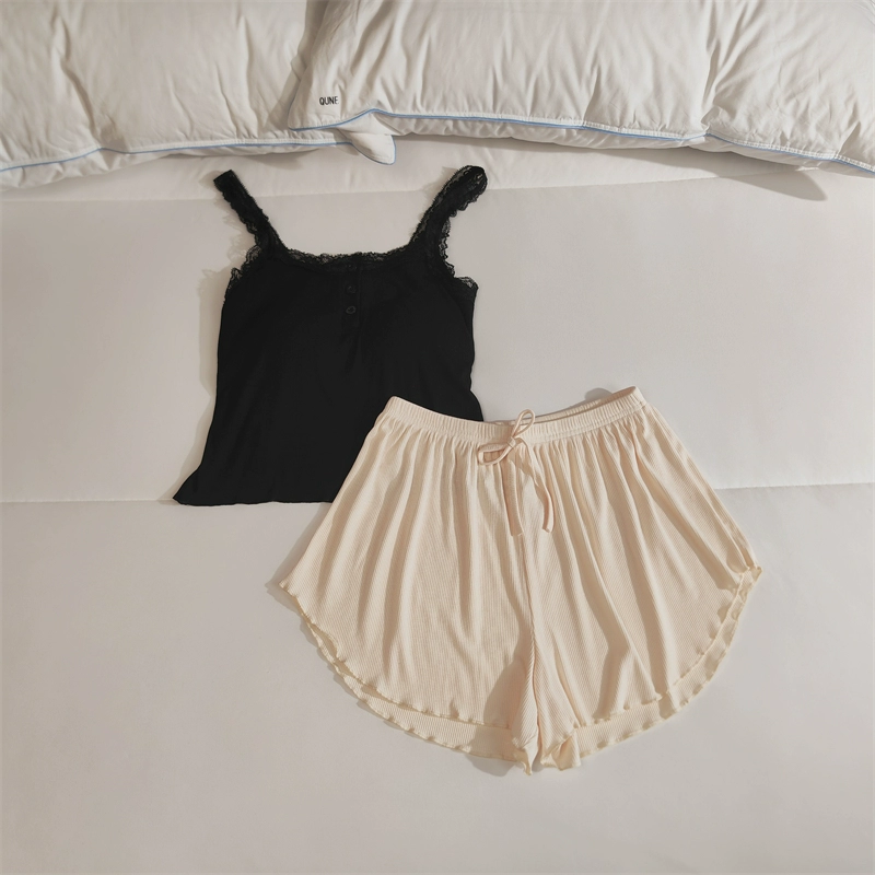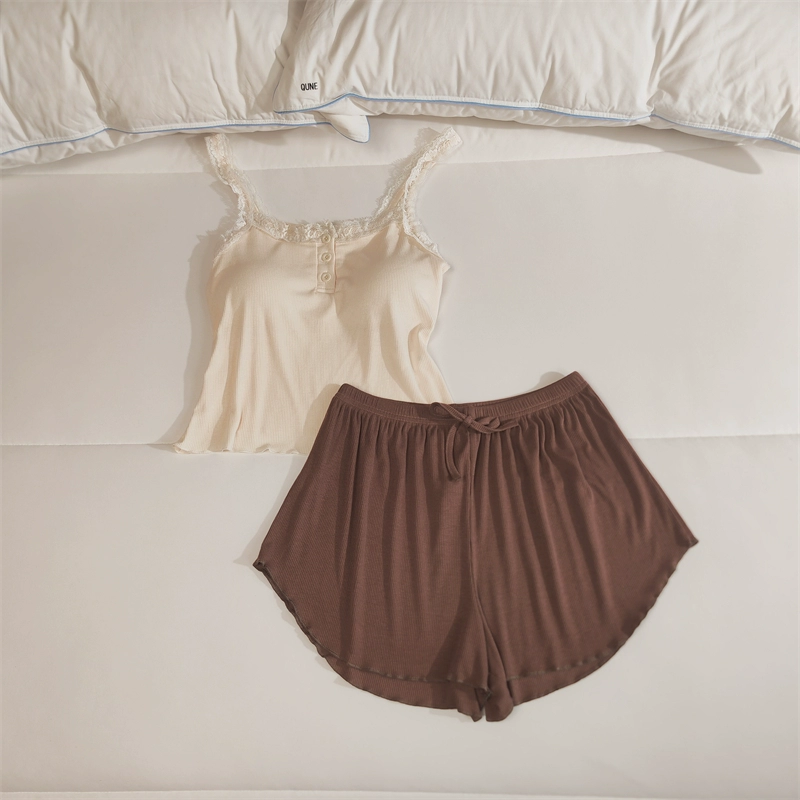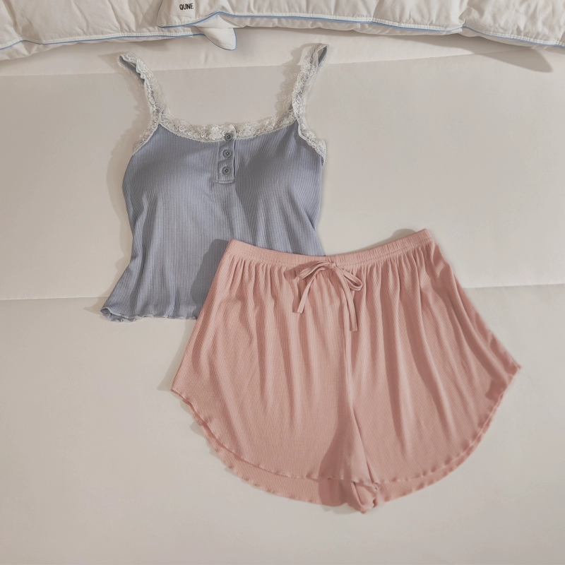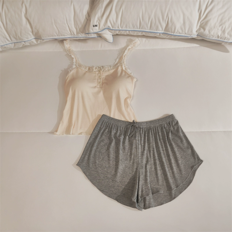 | nameOriginal | Summer pajamas for women with breast pads, one-piece suspender shorts two-piece set, new sweet and pure style modal home clothes |