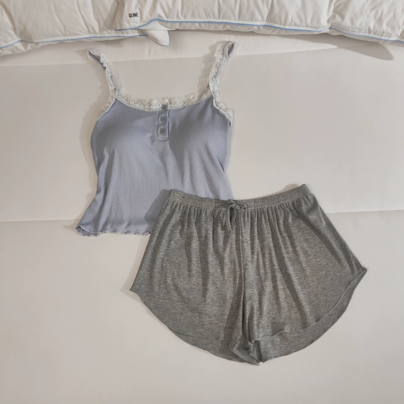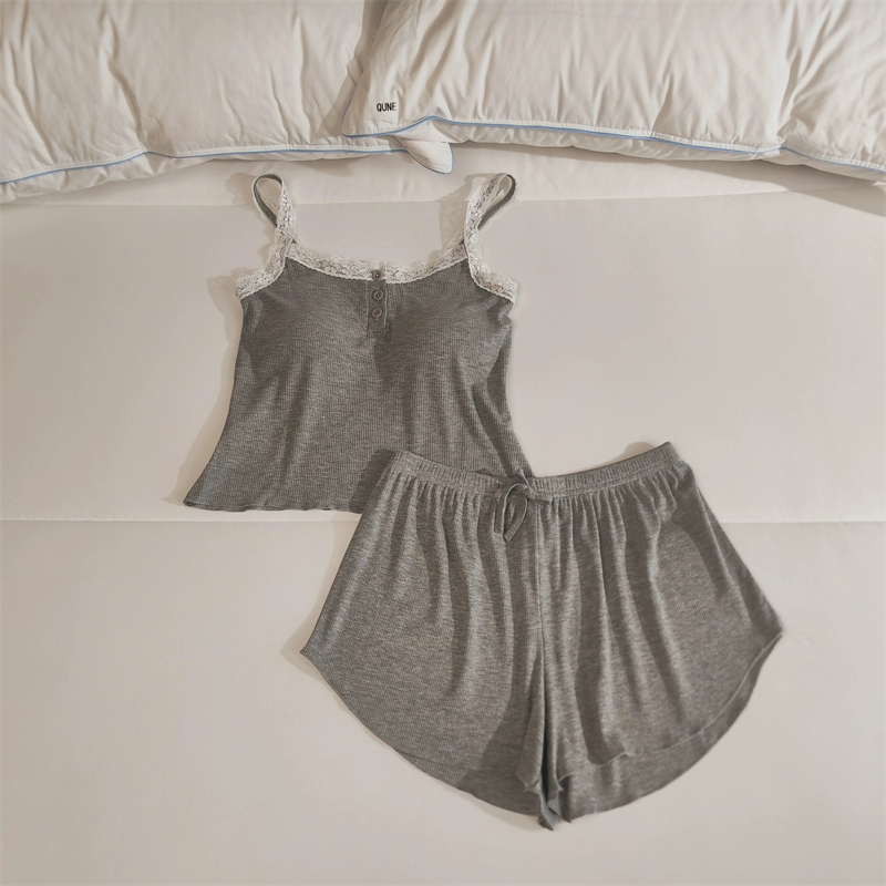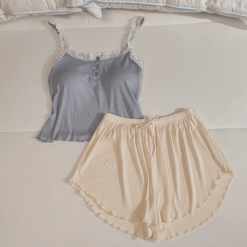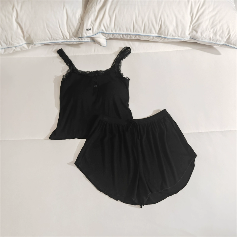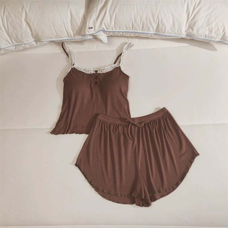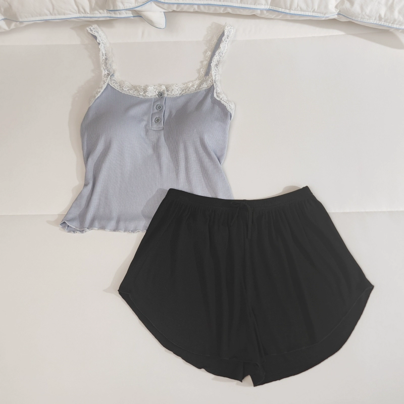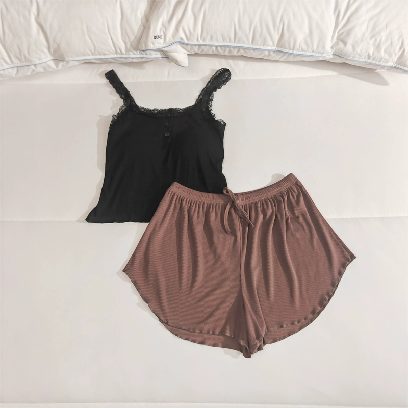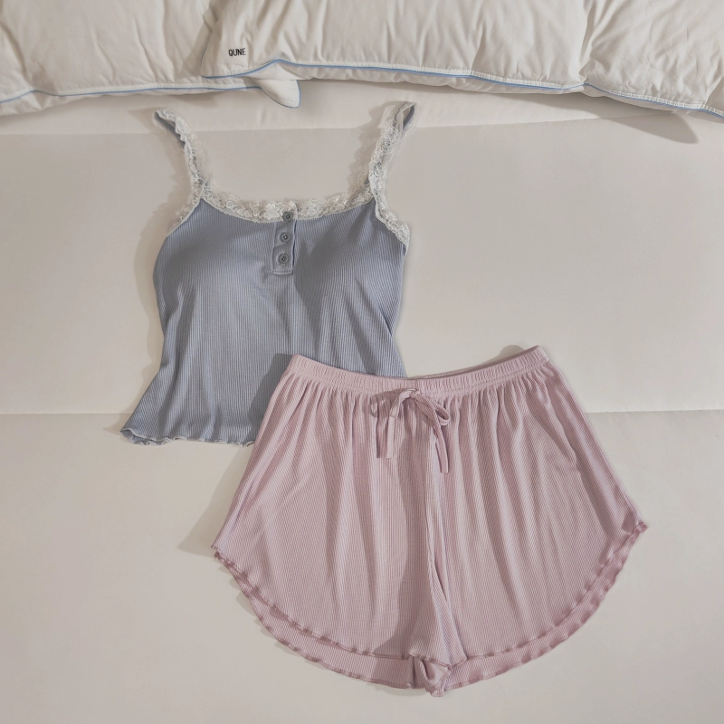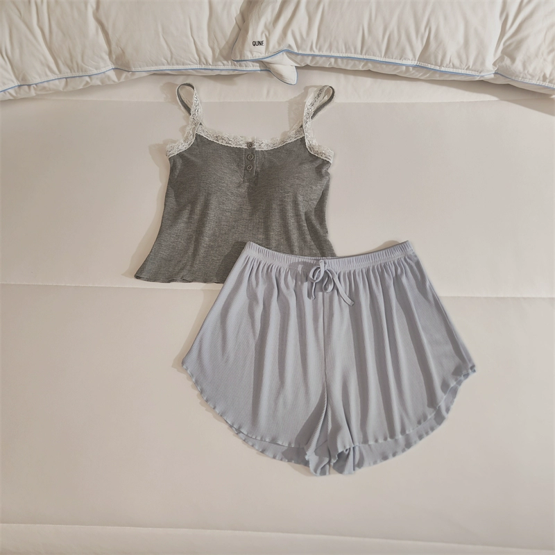 | nameOriginal | Summer pajamas for women with breast pads, one-piece suspender shorts two-piece set, new sweet and pure style modal home clothes |