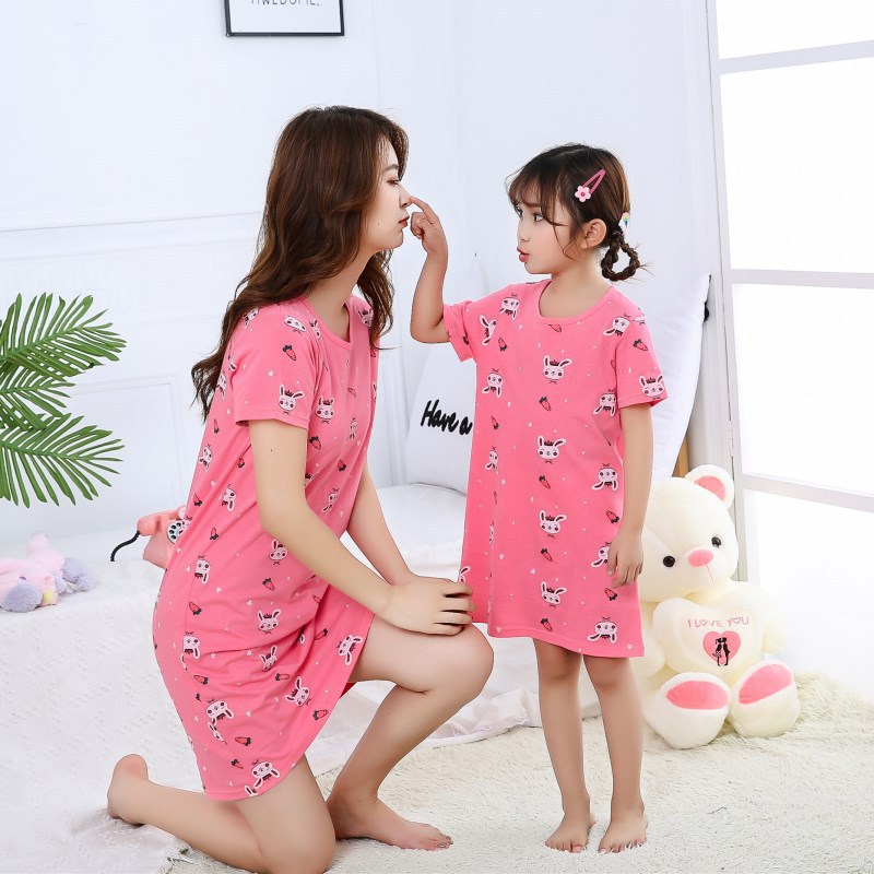 | nameOriginal | Summer Parent Children's Cartoon Printed Thin Round Neck Cotton Dress Nightdress Women's Home Clothes a Generation of Hair |